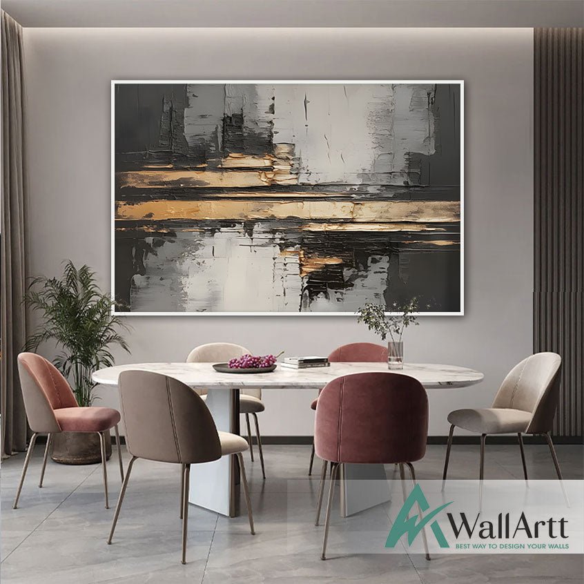 Abstract Gold Skyline 3d Heavy Textured Partial Oil Painting - Wall Art