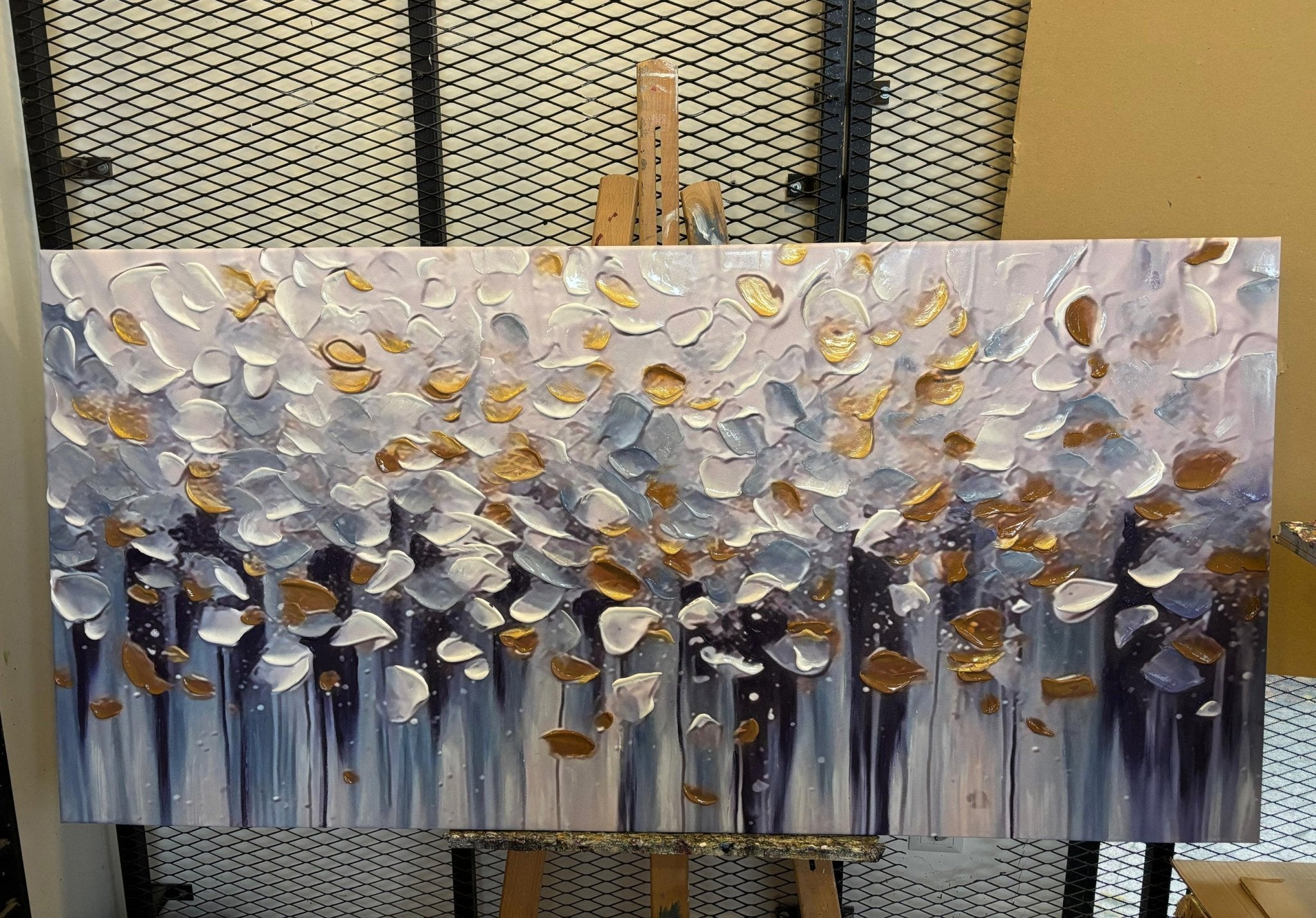 Our 3D paintings aim to achieve a three-dimensional effect using tools such as spatulas and brushes on the printed canvas to create a sense of depth and textural richness.