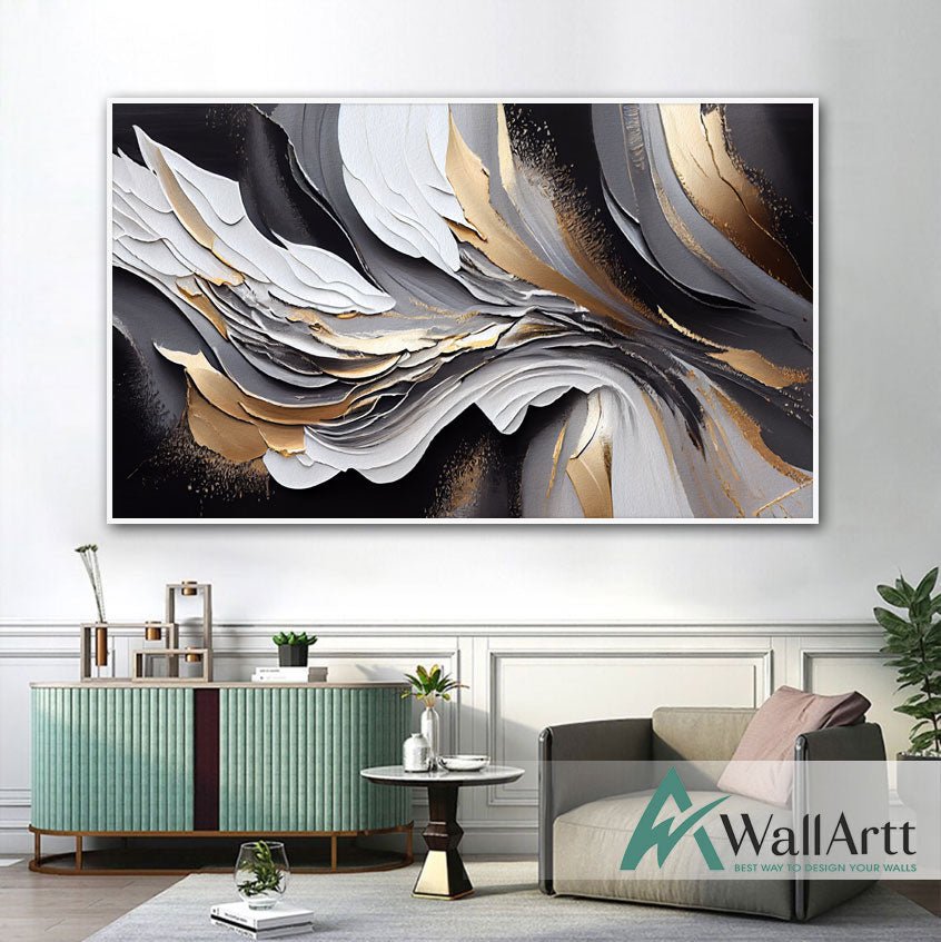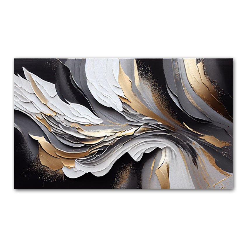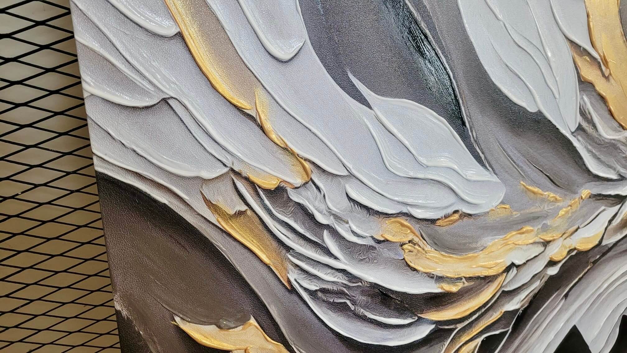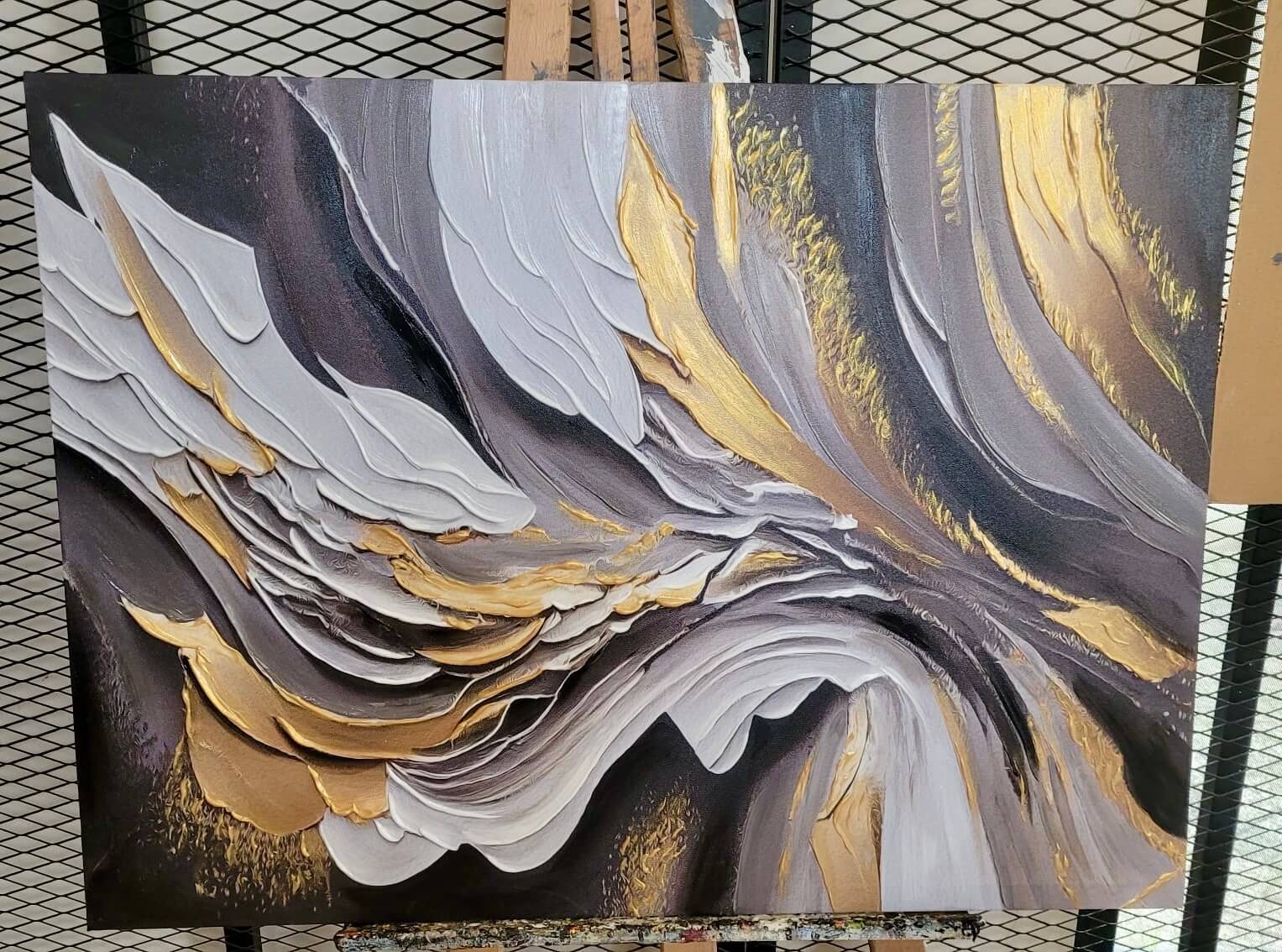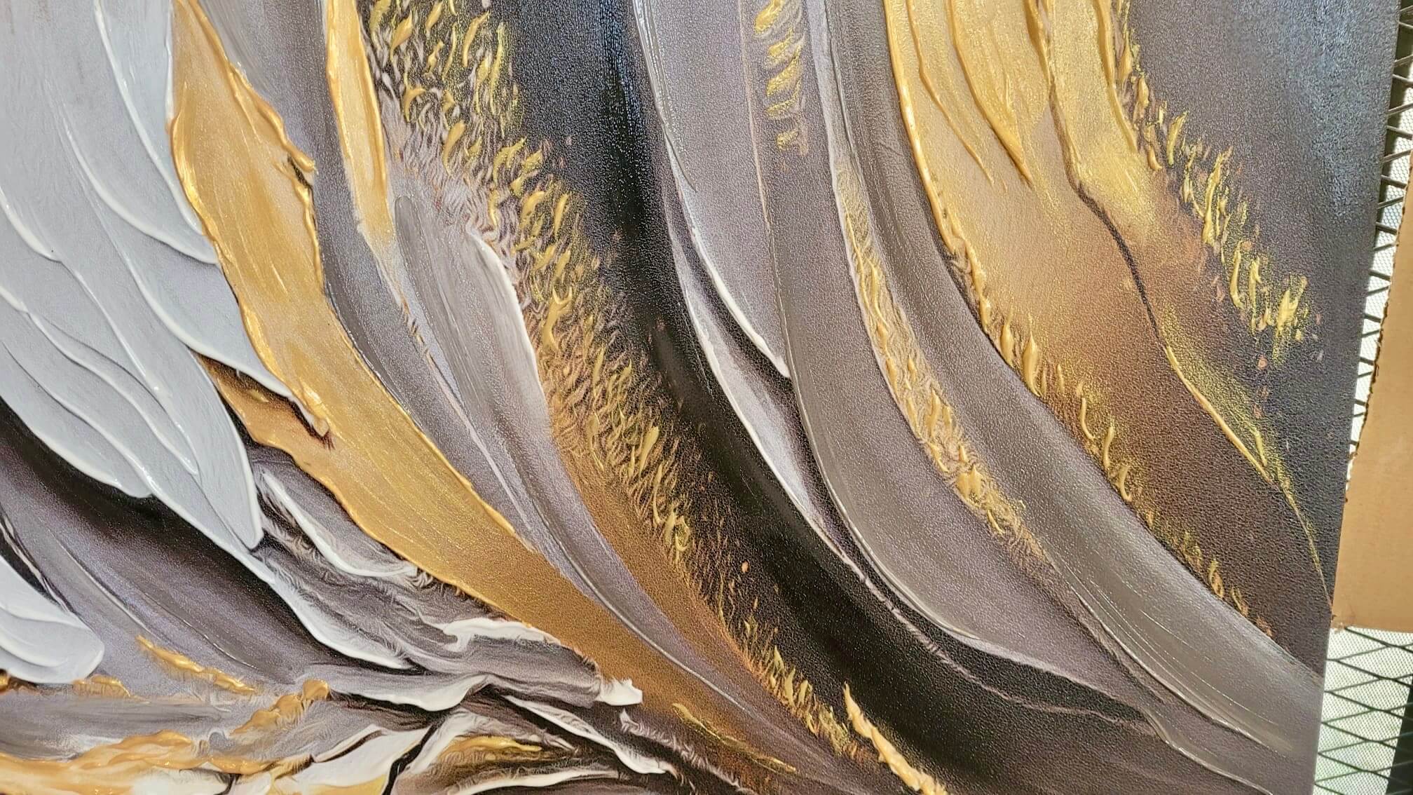 Abstract Gold with Black n White 3d Heavy Textured Partial Oil Painting