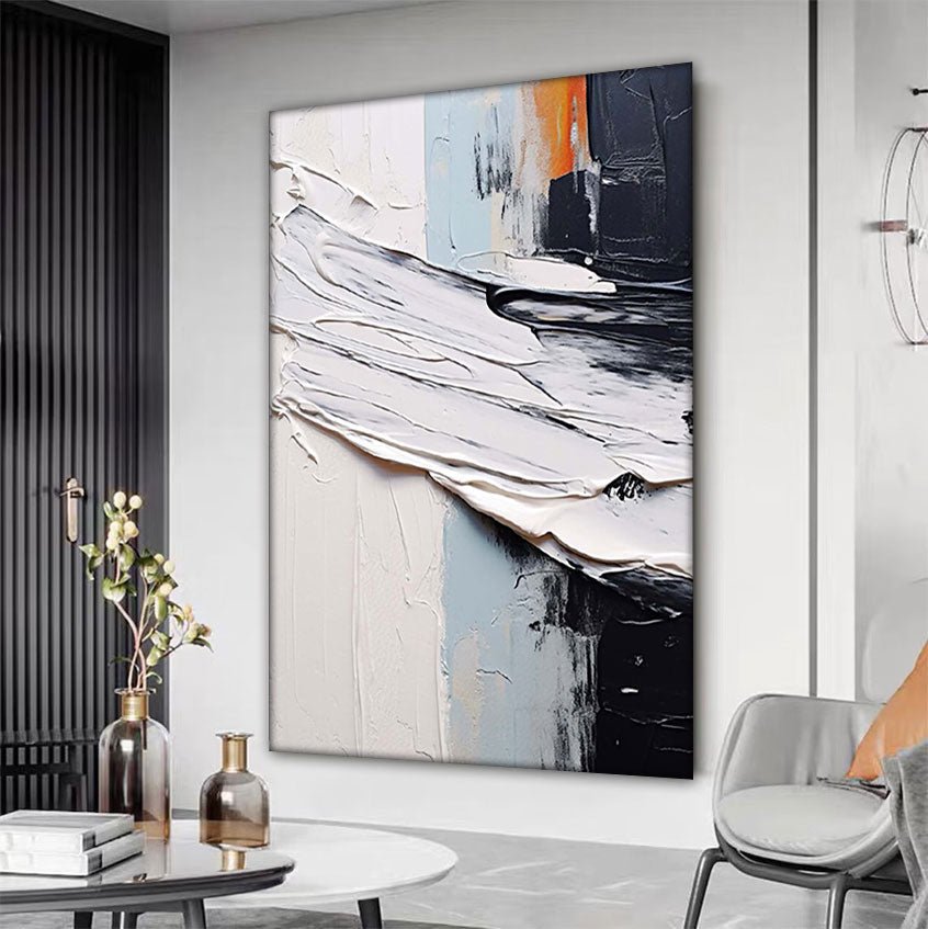 Abstract Orange Blue Black 3d Heavy Textured Partial Oil Painting