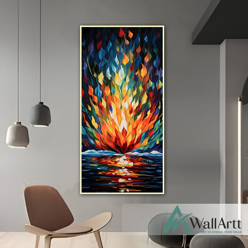 Abstract Orange Flame II 3d Heavy Textured Partial Oil Painting - Wall Art