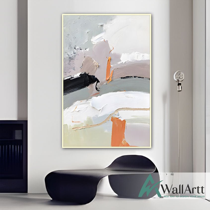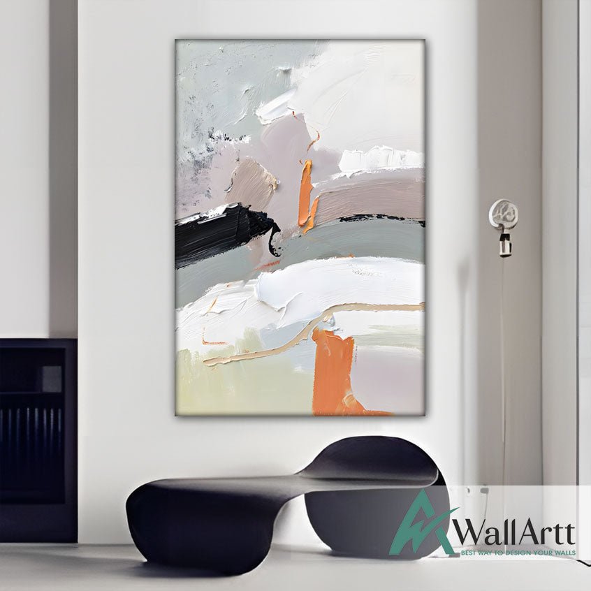 Abstract White & Orange 3d Heavy Textured Partial Oil Painting