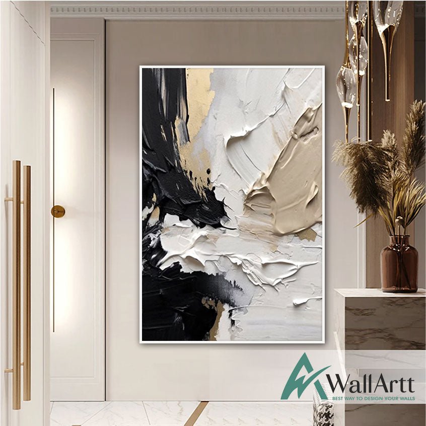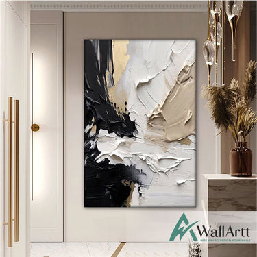 Black Beige Abstract 3d Heavy Textured Partial Oil Painting