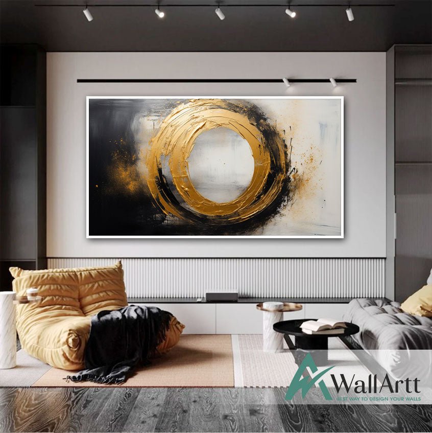 Black Gold Circle 3D Heavy Textured Partial oil Painting