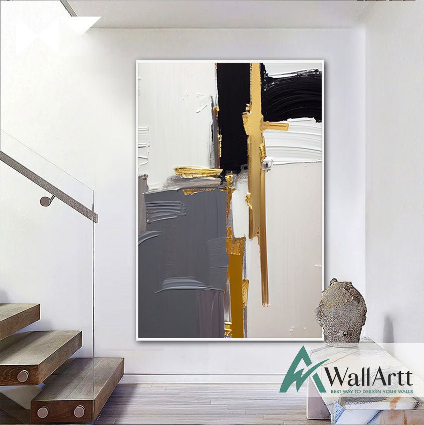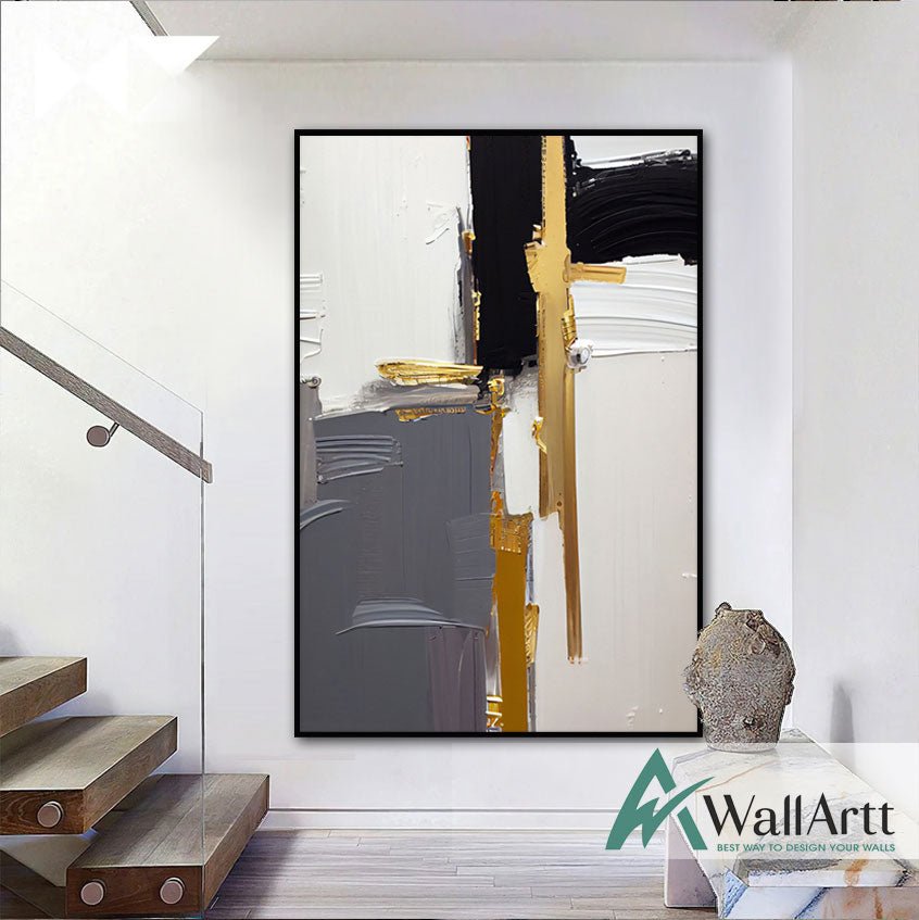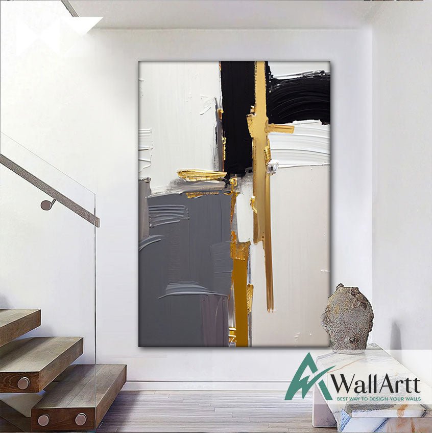 Black Grey with Gold III 3D Heavy Textured Partial Oil Painting