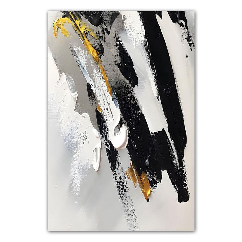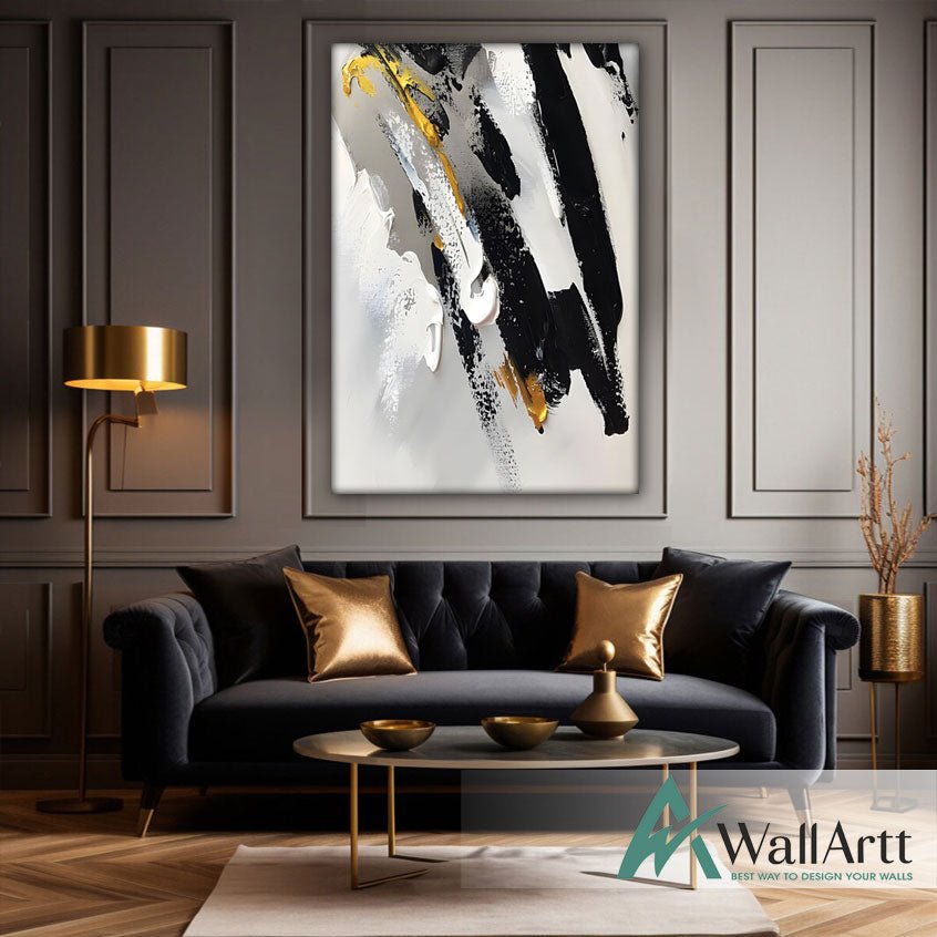 Black White with Gold 3d Heavy Textured Partial Oil Painting -Wall Art