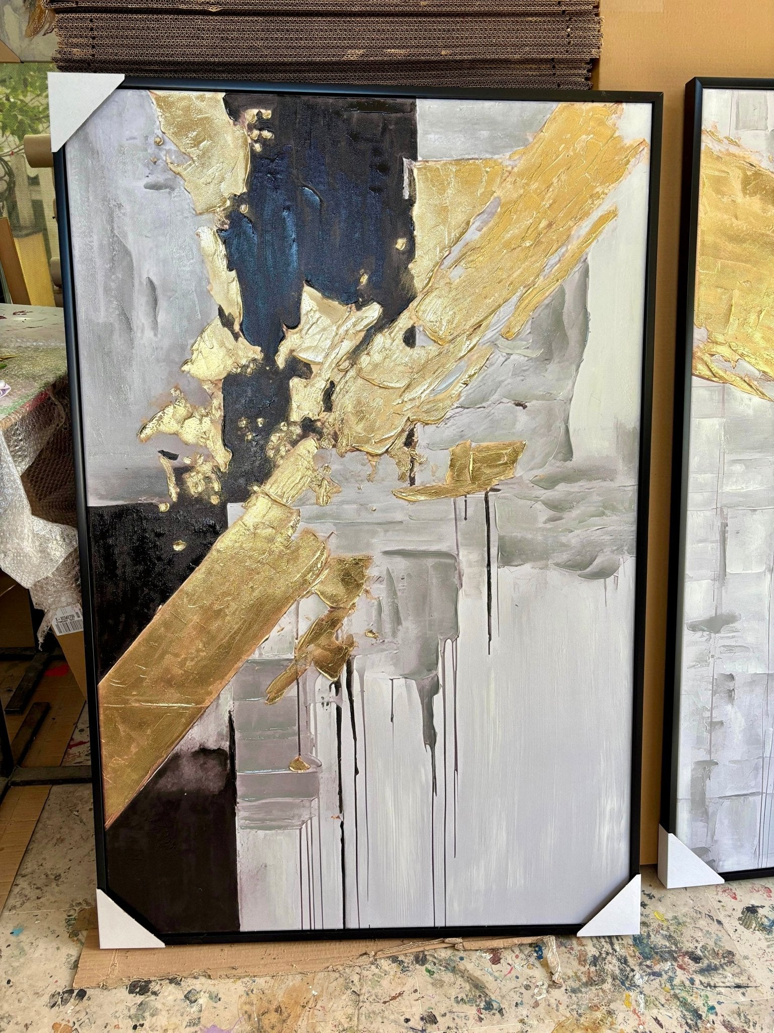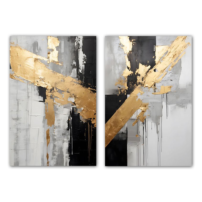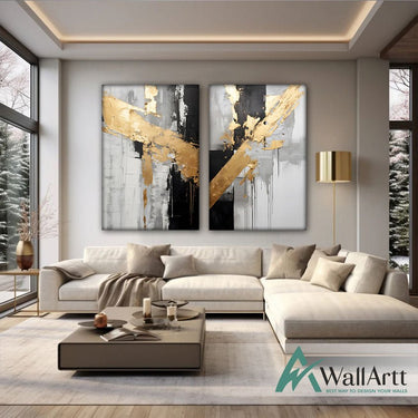 Black with Gold Foil 2 Piece 3d Heavy Textured Partial Oil Painting - Wall Art