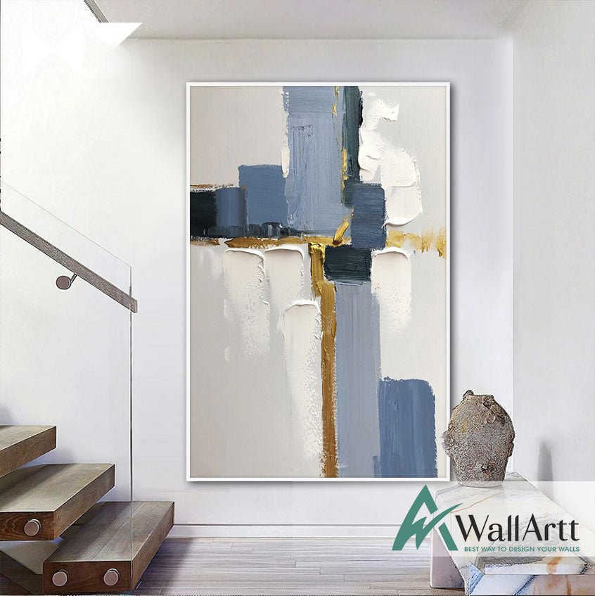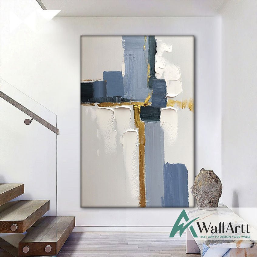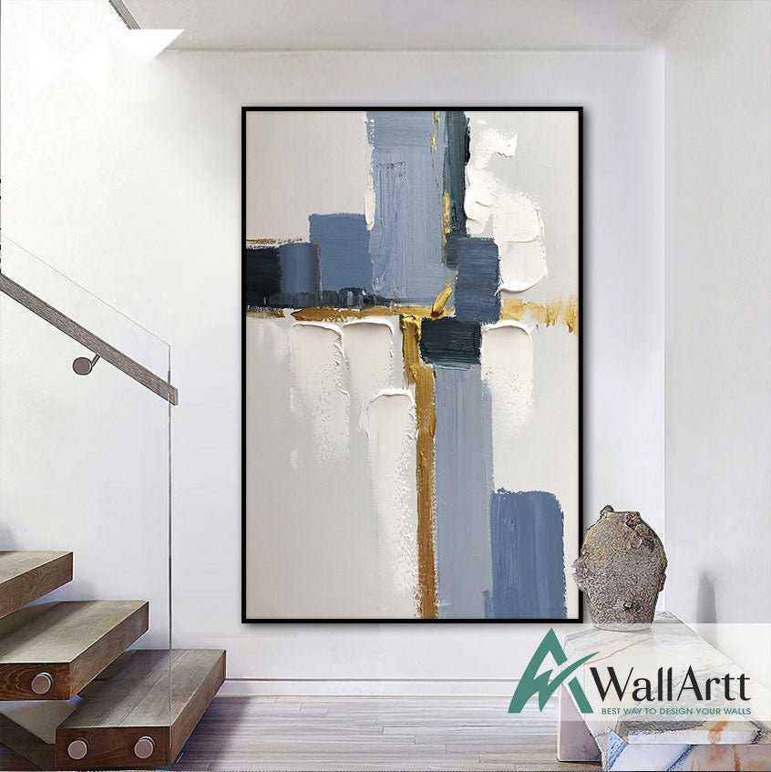 Blue Tones with Gold 3d Heavy Textured Partial Oil Painting