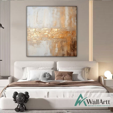 Brown with Gold Foil 3D Heavy Textured Partial Oil Painting - Wall Art