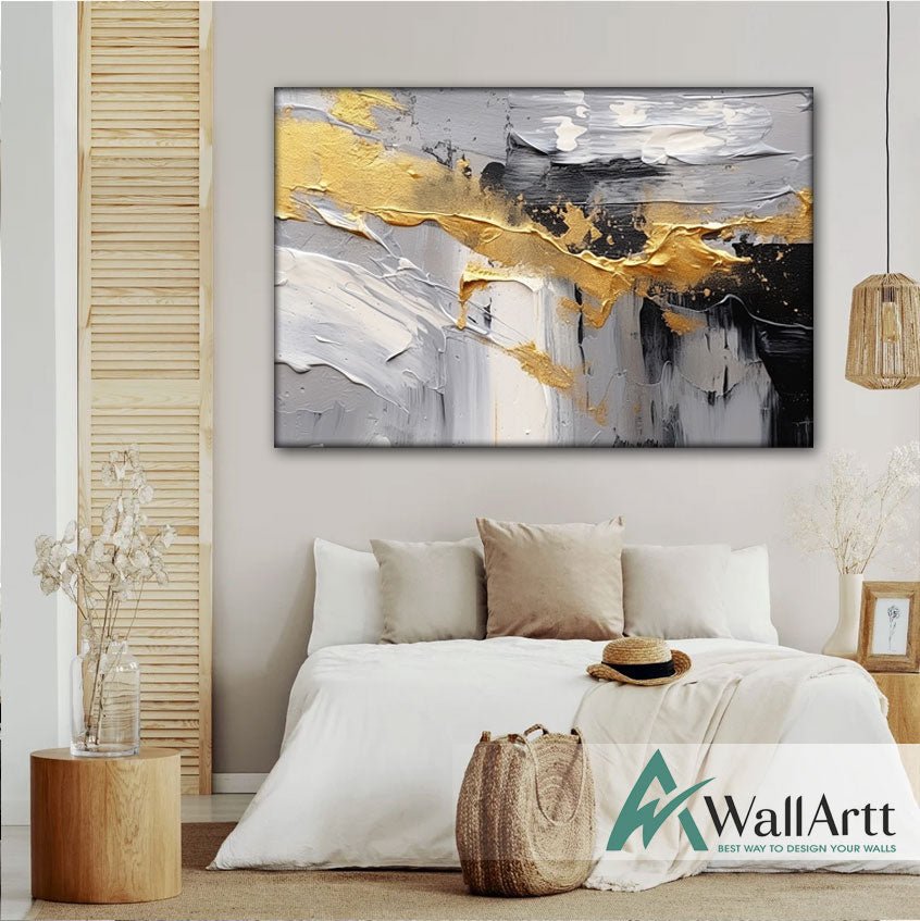 Gold Splash with Black n White 3d Heavy Textured Partial Oil Painting
