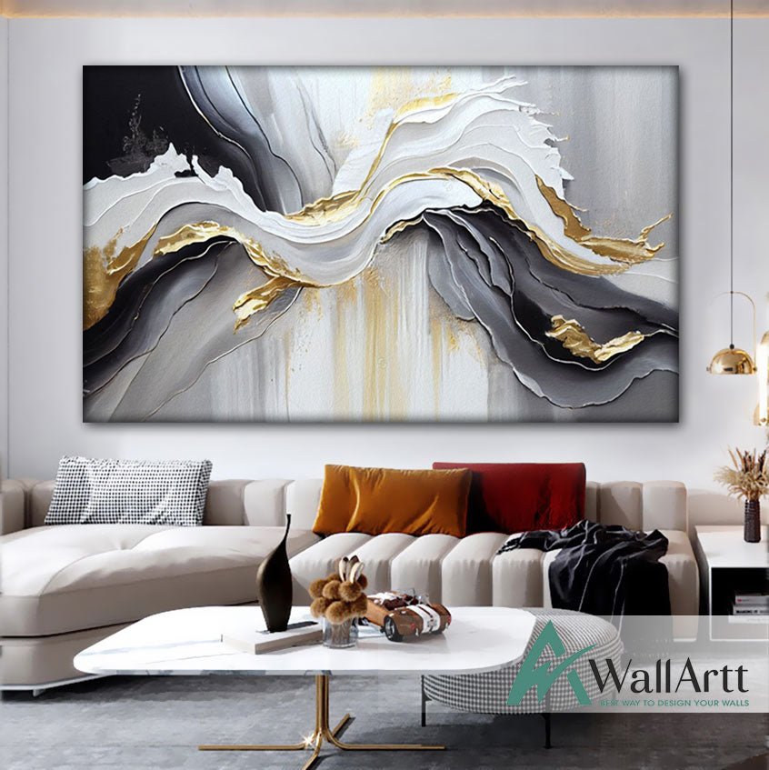 Harmony of Gold n Grey 3d Heavy Textured Partial Oil Painting
