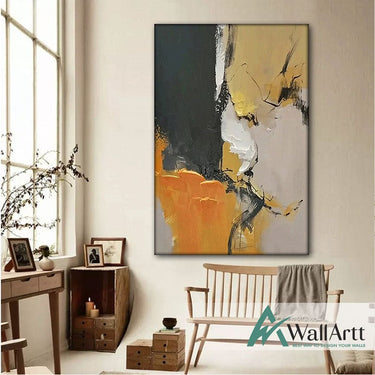 Orange Black Abstract 3d Heavy Textured Partial Oil Painting