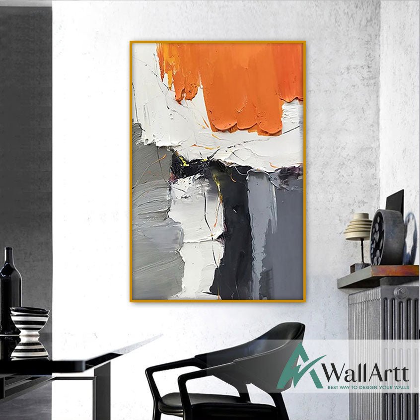Orange with Black n White 3d Heavy Textured Partial Oil Painting