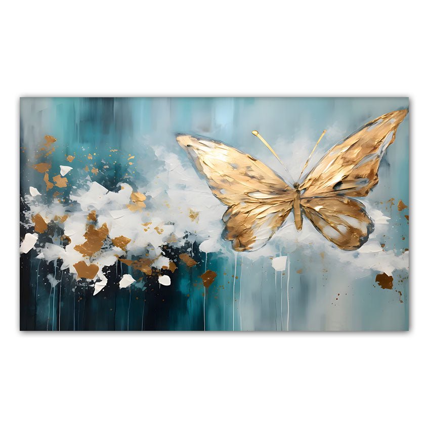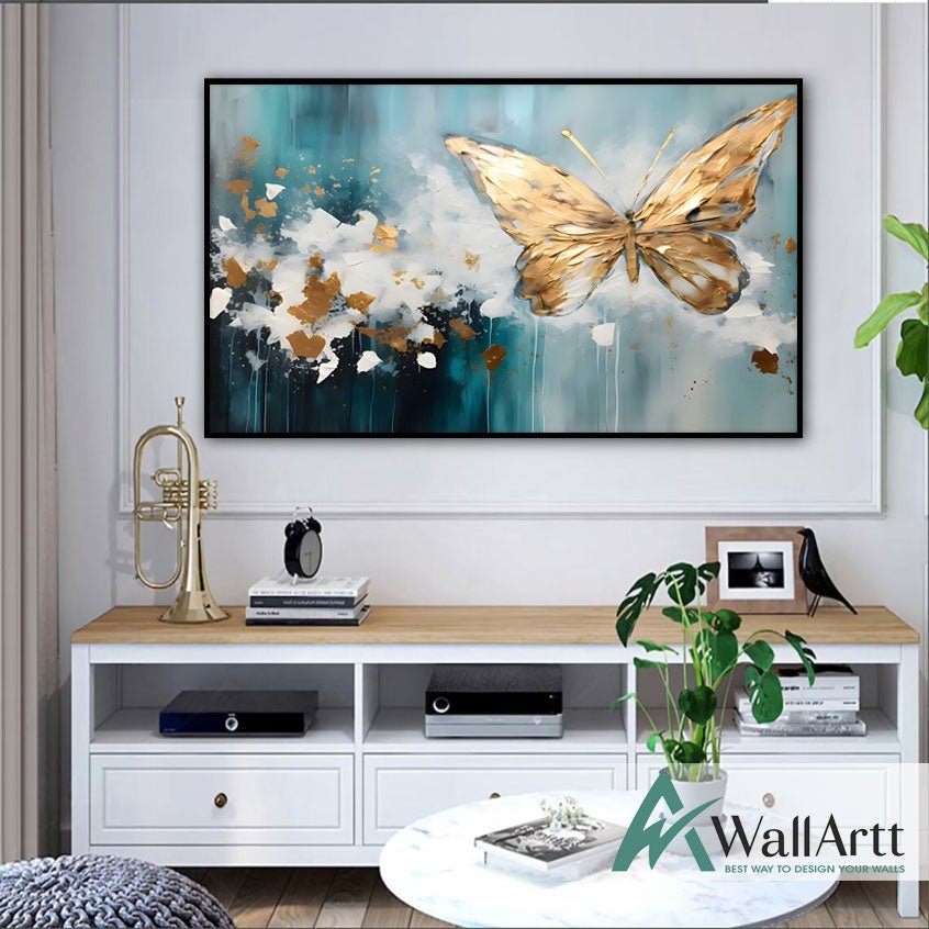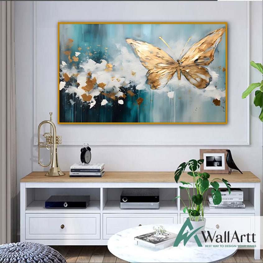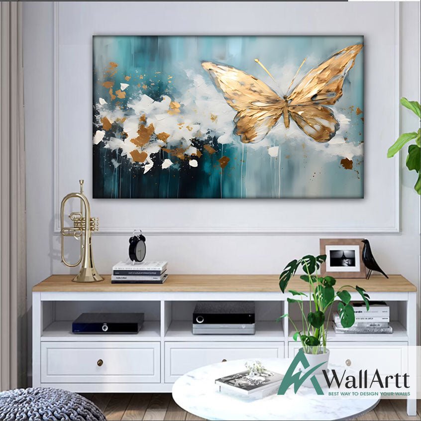 Blue Gold Butterfly 3D Heavy Textured Partial Oil Painting