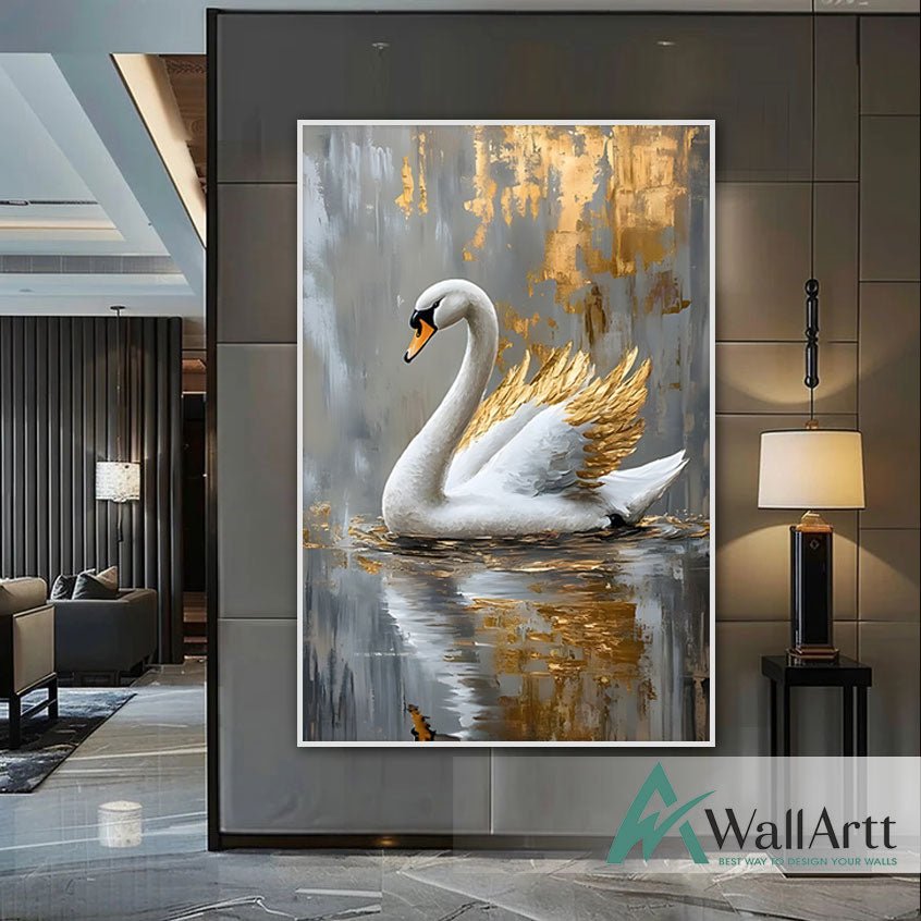 Golden-Winged Swan 3D Heavy Textured Partial Oil Painting