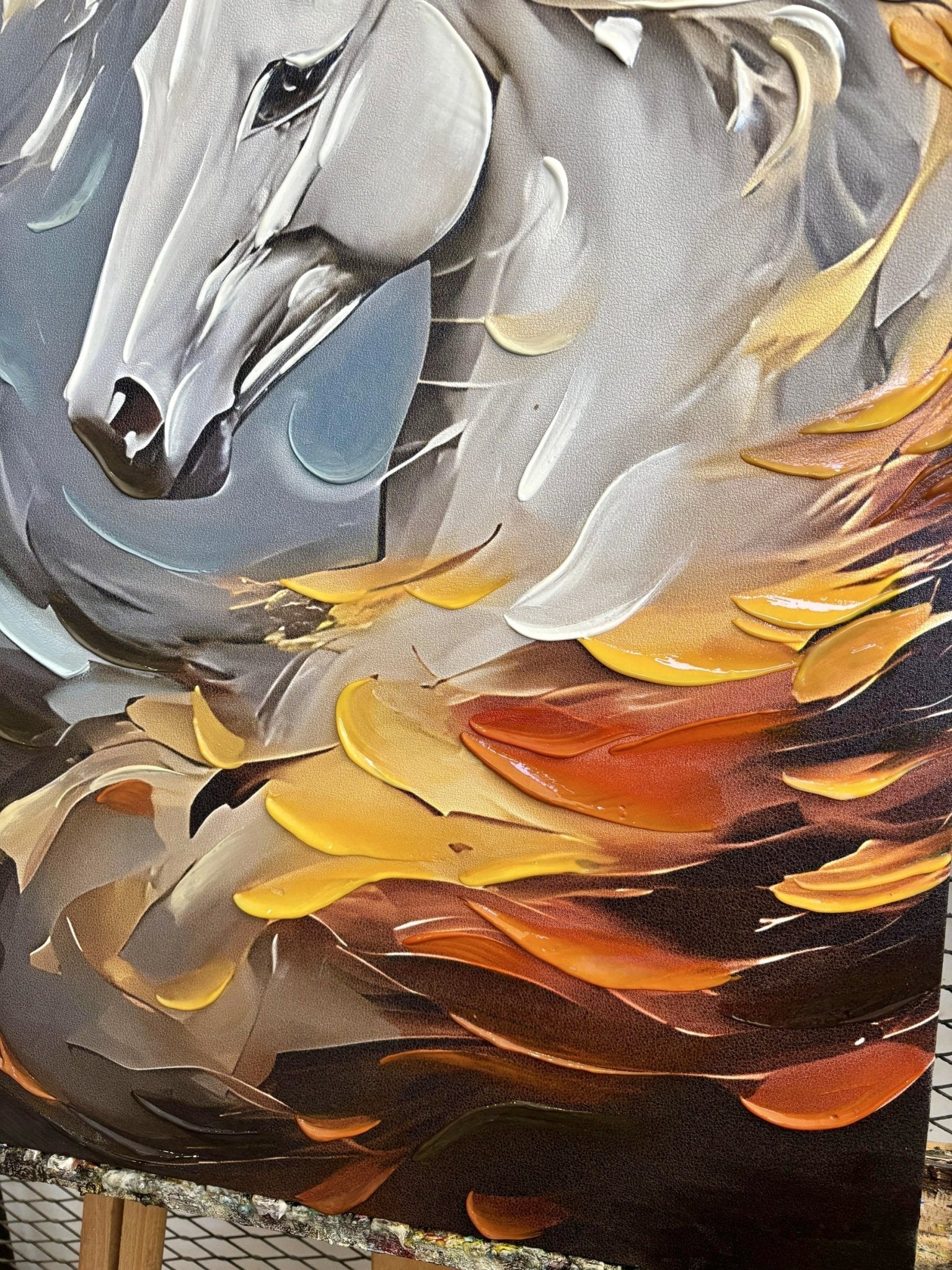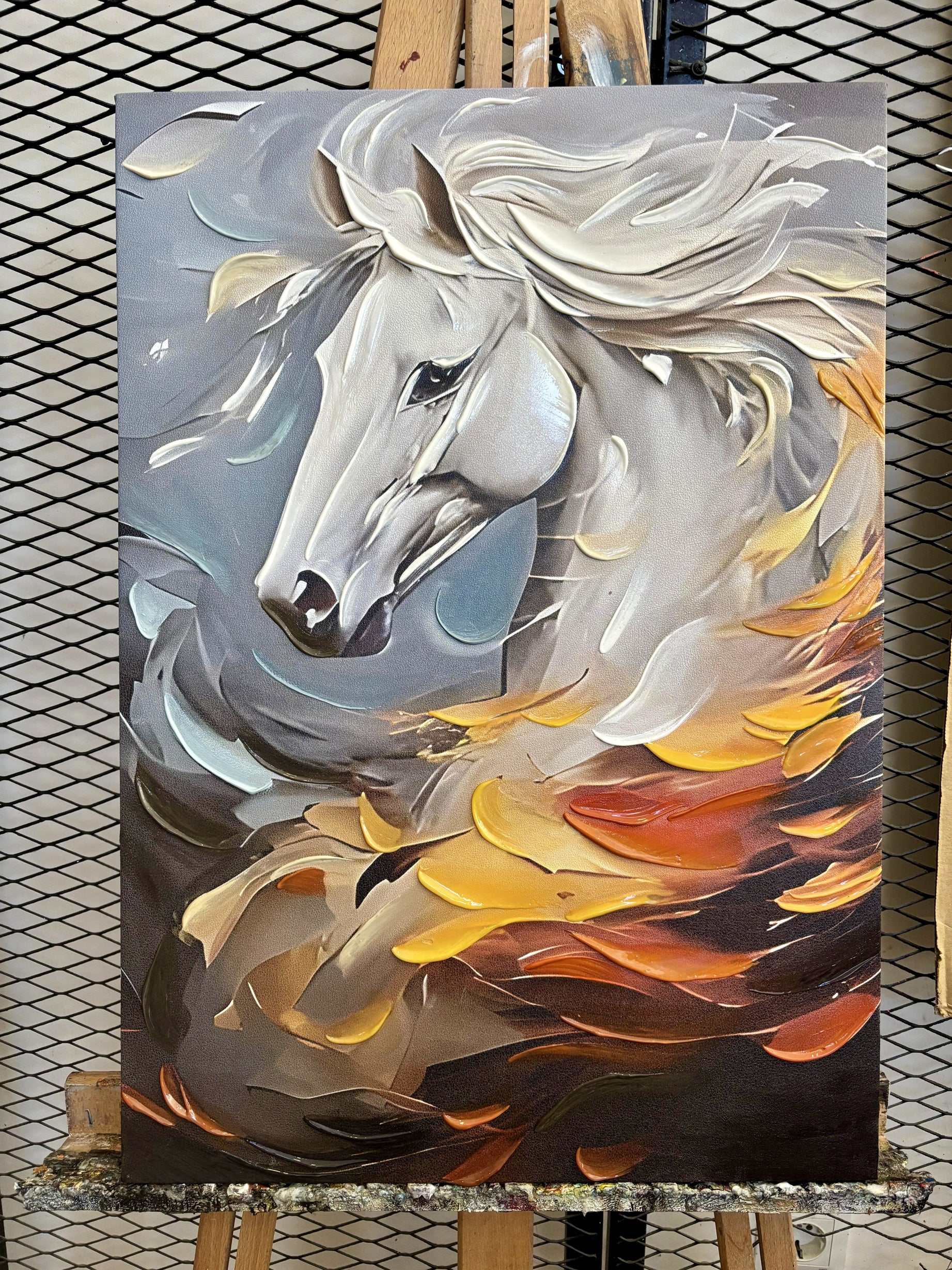 Our 3D paintings aim to achieve a three-dimensional effect using tools such as spatulas and brushes on the printed canvas to create a sense of depth and textural richness.