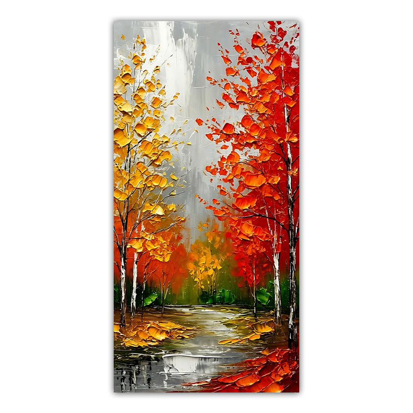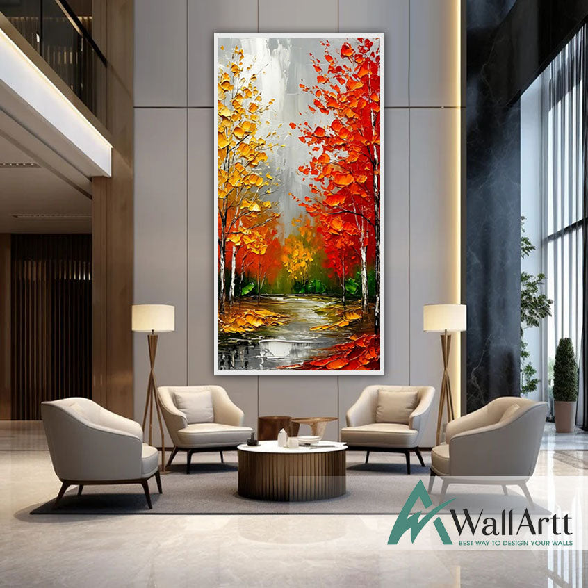 Autumn River Path 3d Heavy Textured Partial Oil Painting