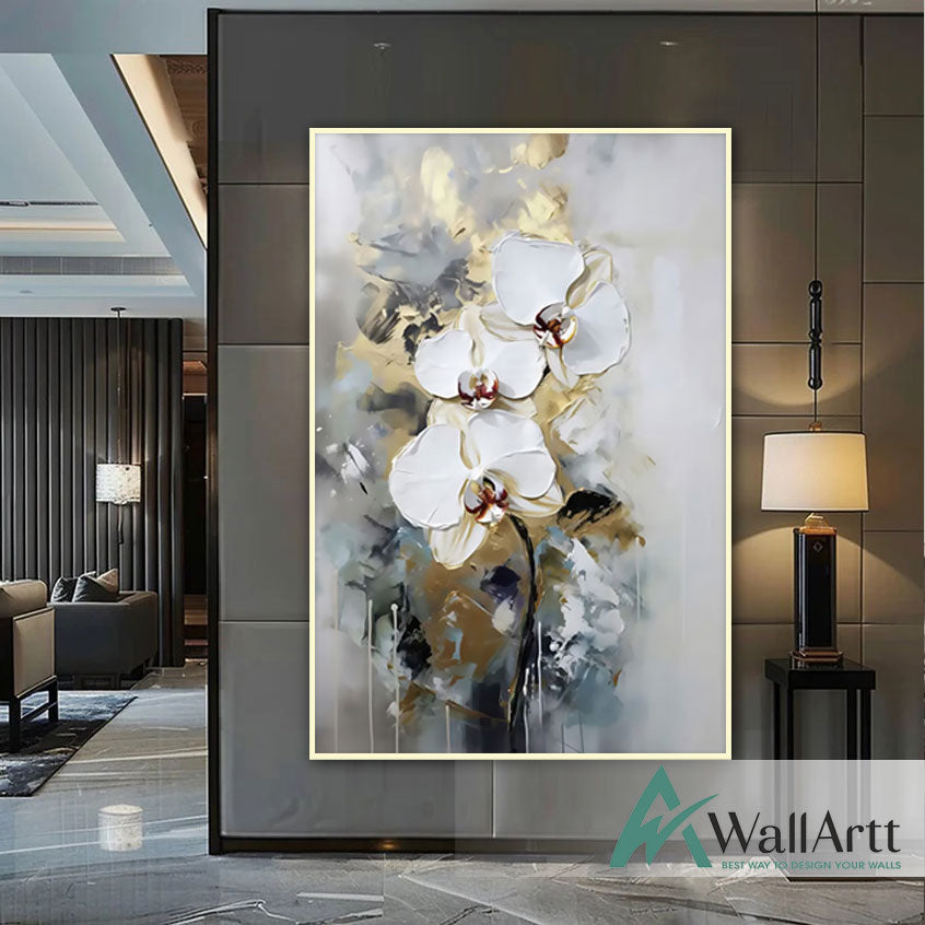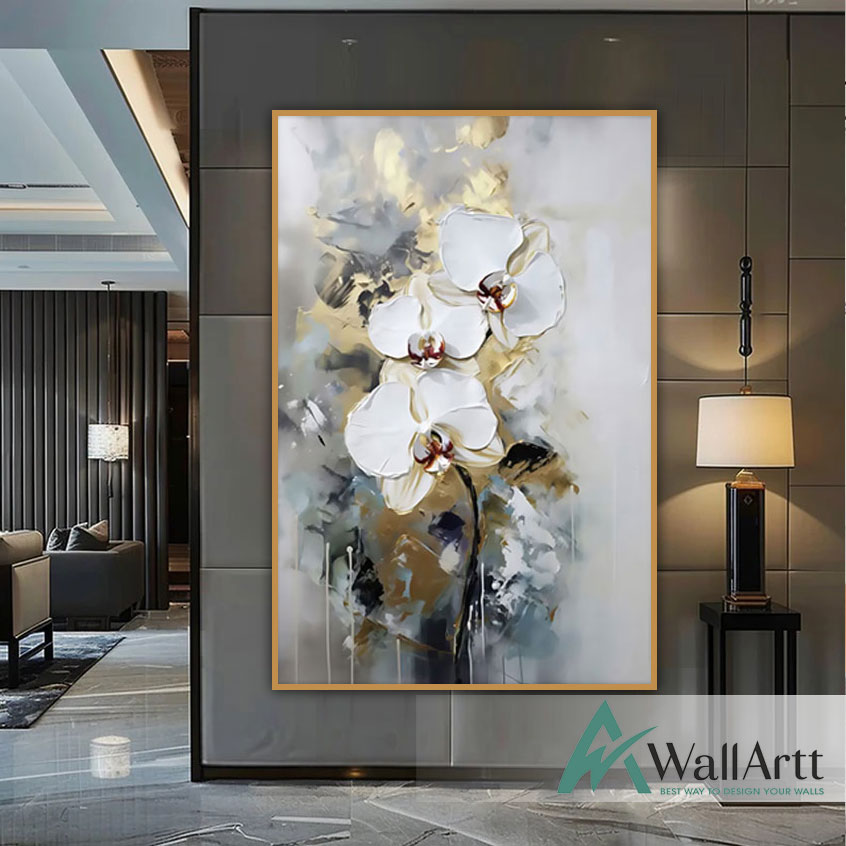 Orchid Elegance 3d Heavy Textured Partial Oil Painting