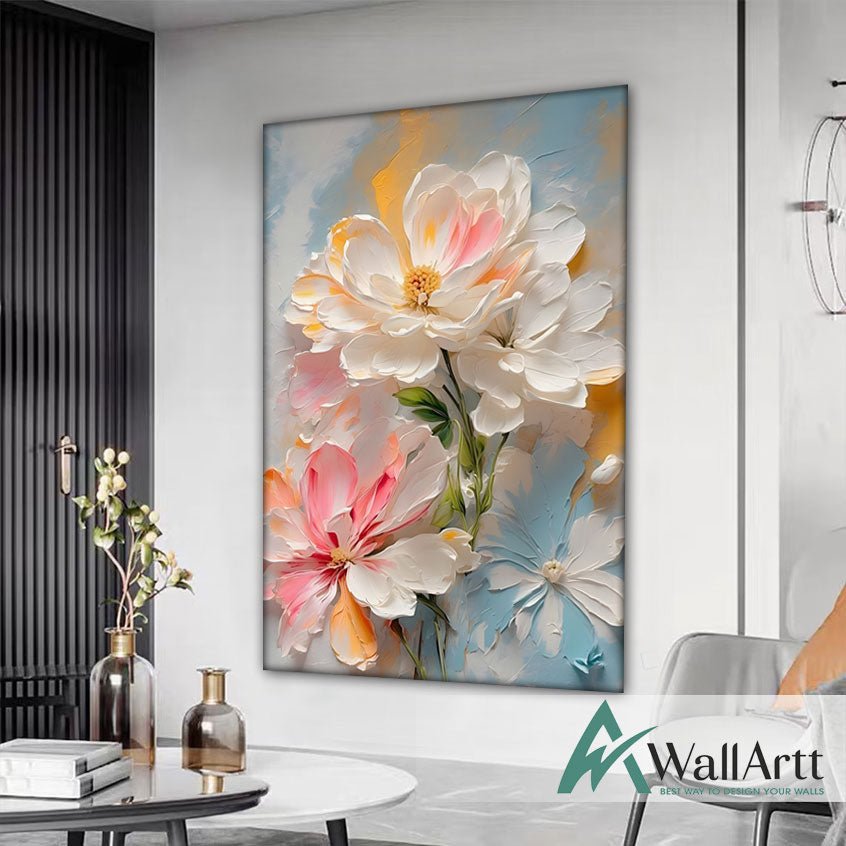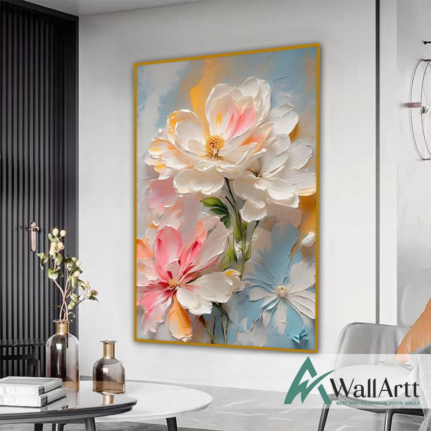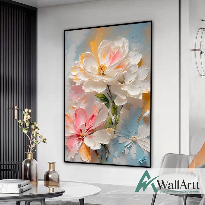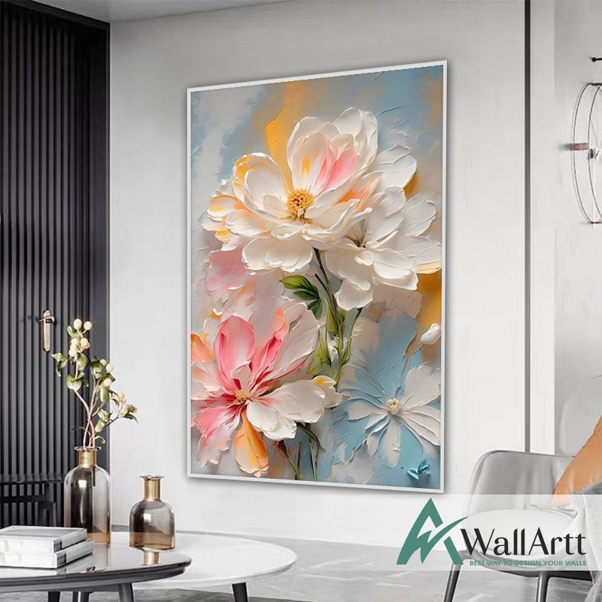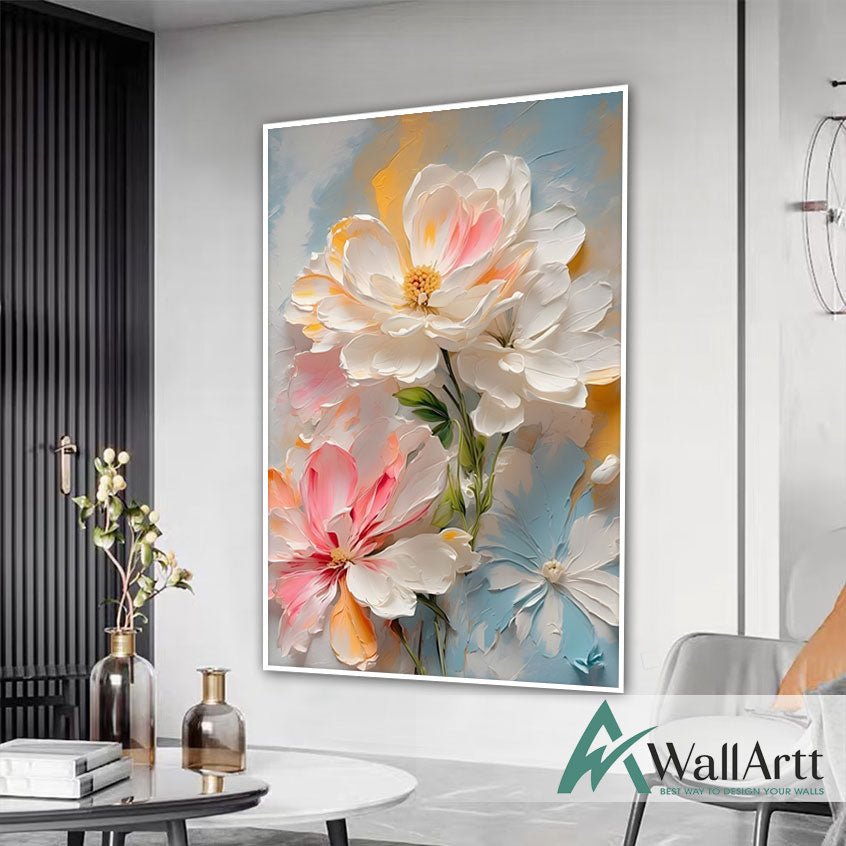 Petals in Pastel 3d Heavy Textured Partial Oil Painting