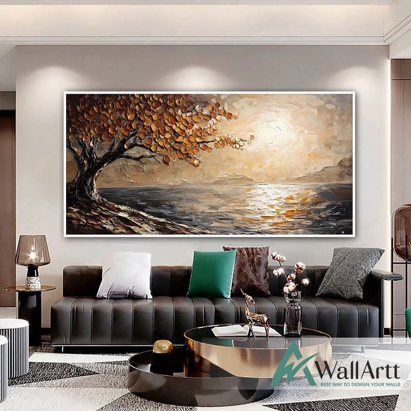 Tree by the Shore 3d Heavy Textured Partial Oil Painting