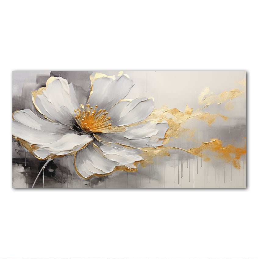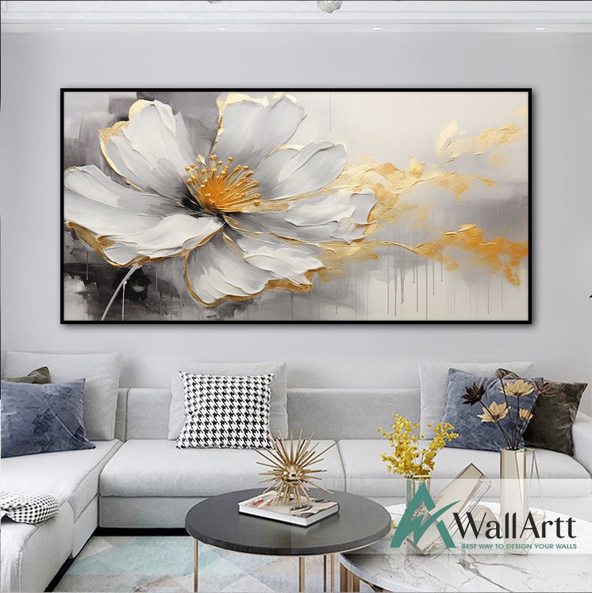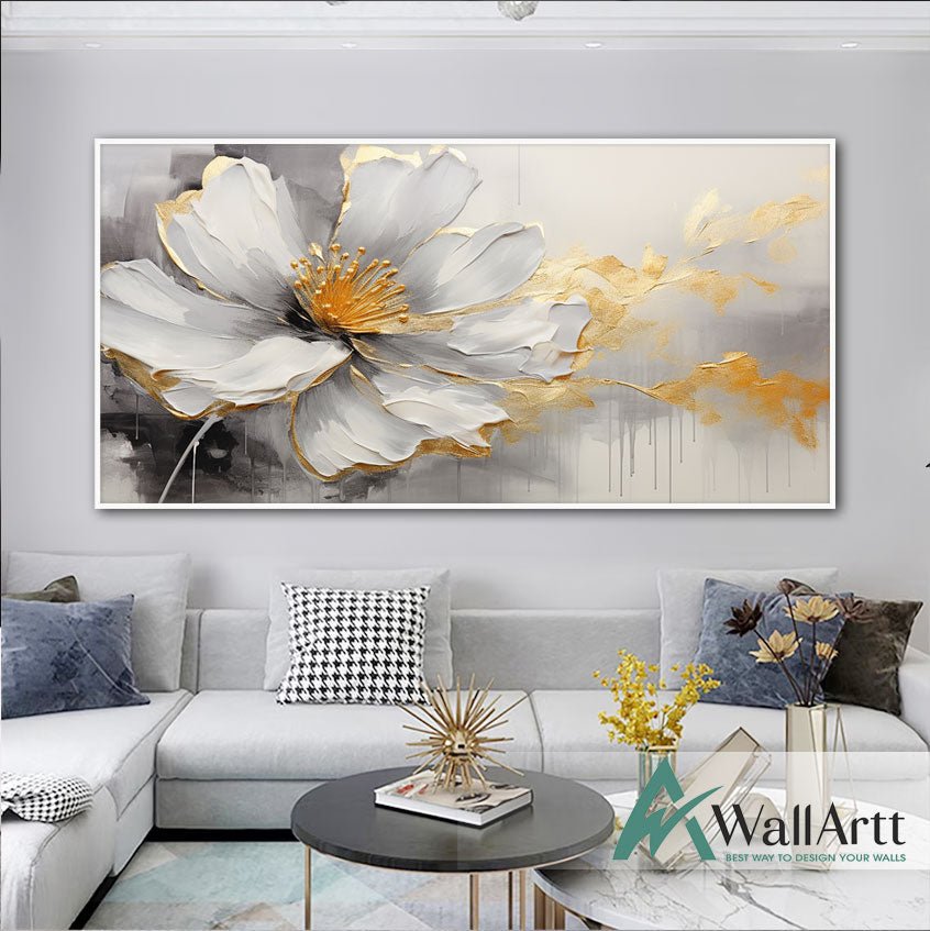 White Gold Flower 3d Heavy Textured Partial Oil Painting