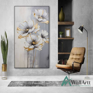 White Gold Flowers 3D Heavy Textured Partial oil Painting