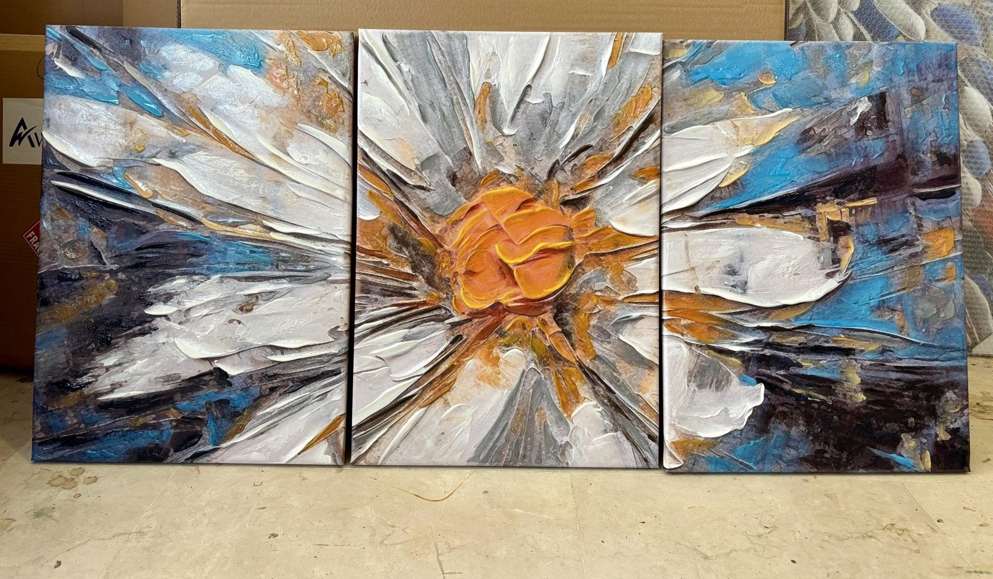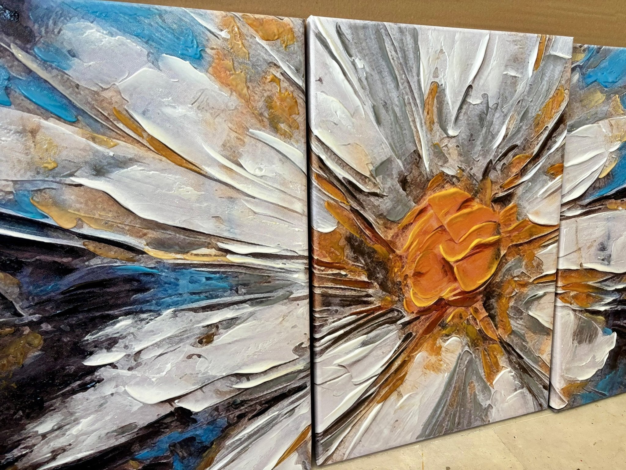 White Orange Daisy 3 Piece 3d Heavy Textured Partial Oil Painting