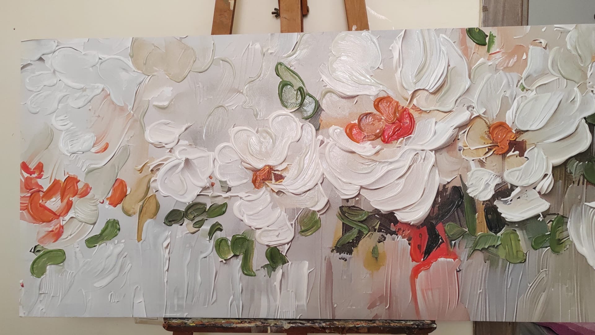 White Orange Flowers 3d Heavy Textured Partial Oil Painting