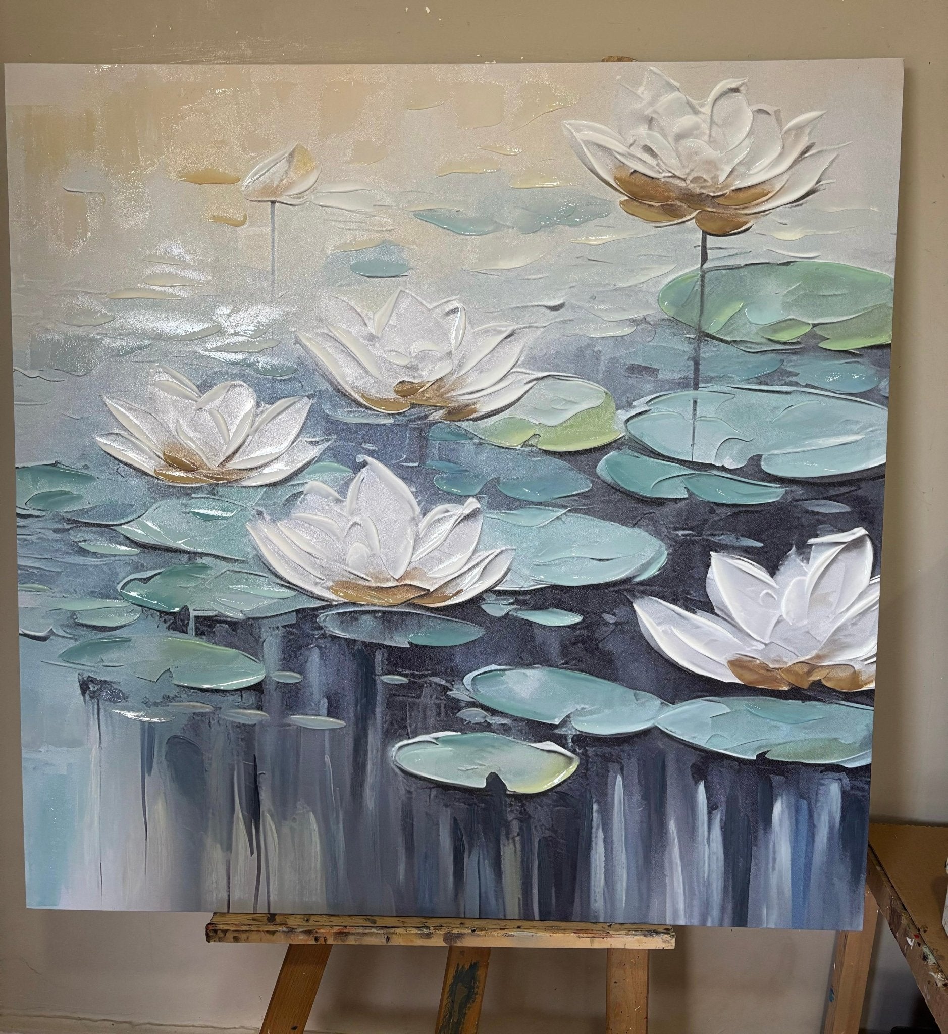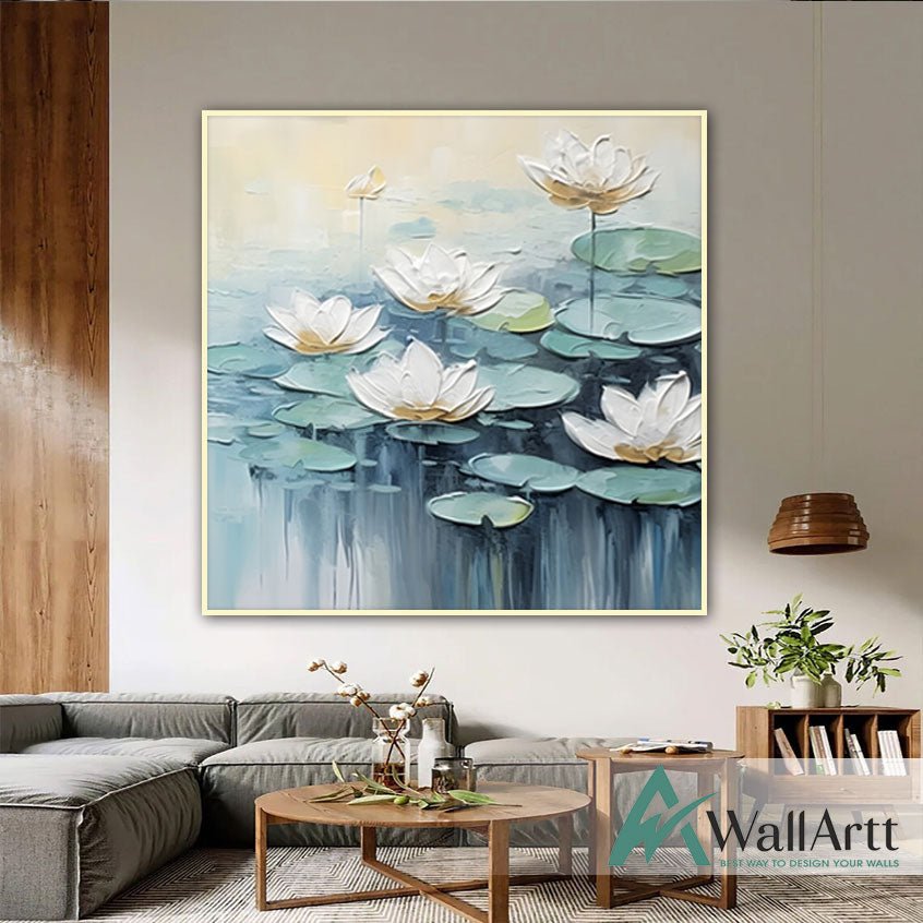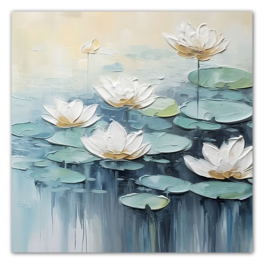 White Water Lilies 3D Heavy Textured Partial Oil Painting