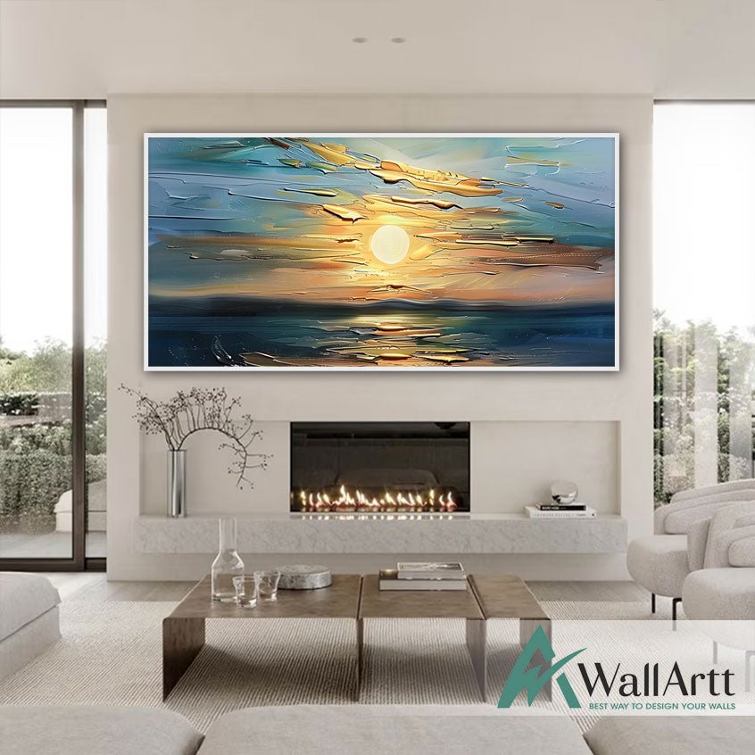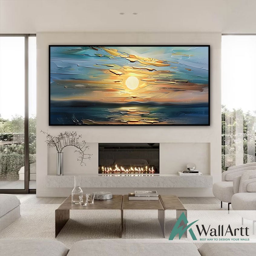 Abstract Sunset 3D Heavy Textured Partial Oil Painting - Wall Art