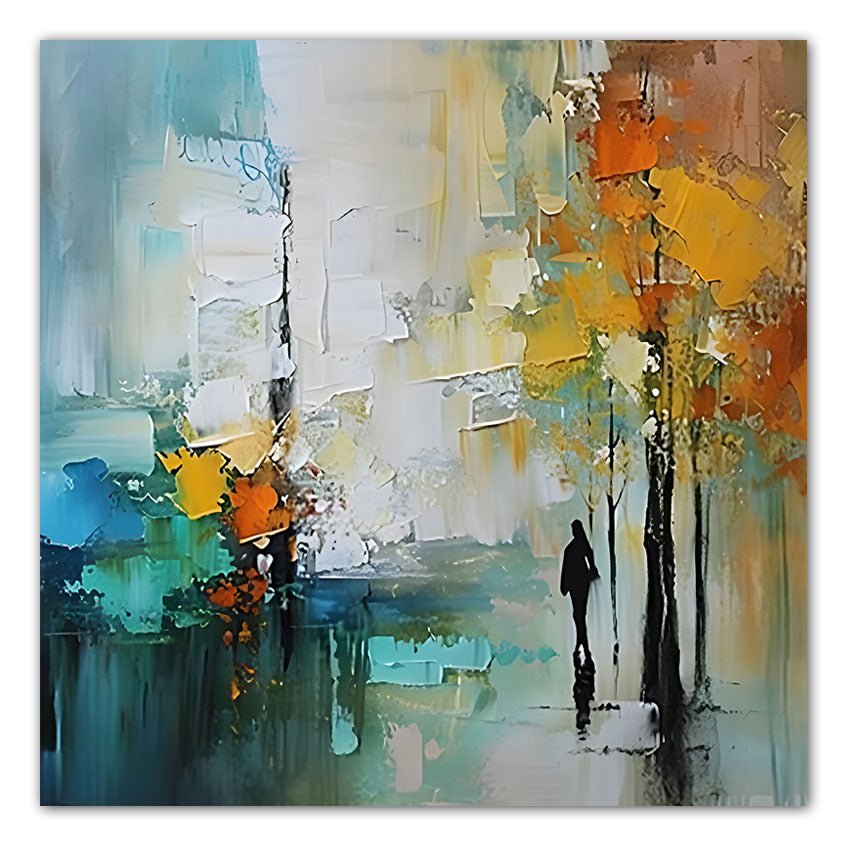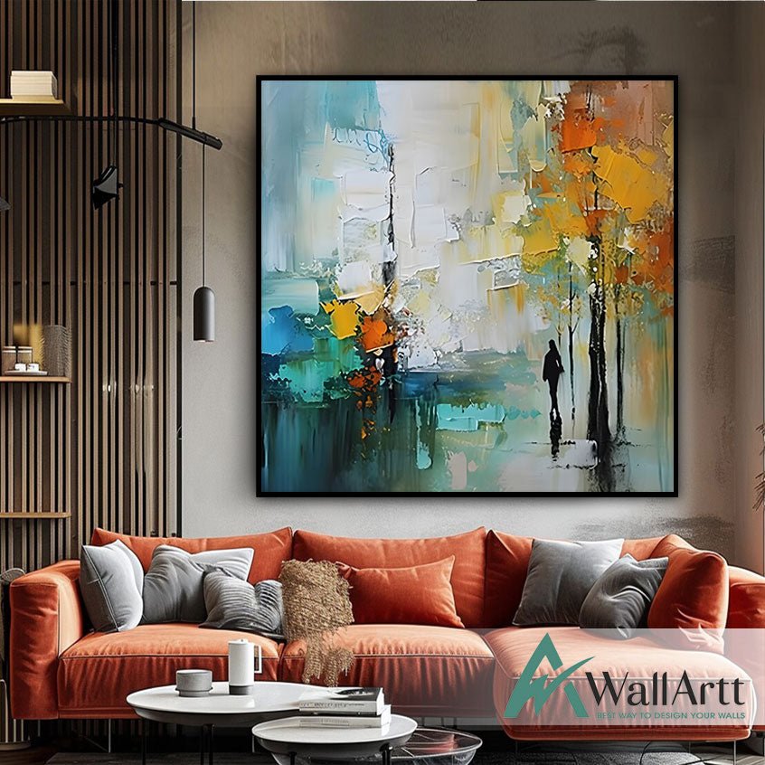 Autumn Street Stroll 3d Heavy Textured Partial Oil Painting