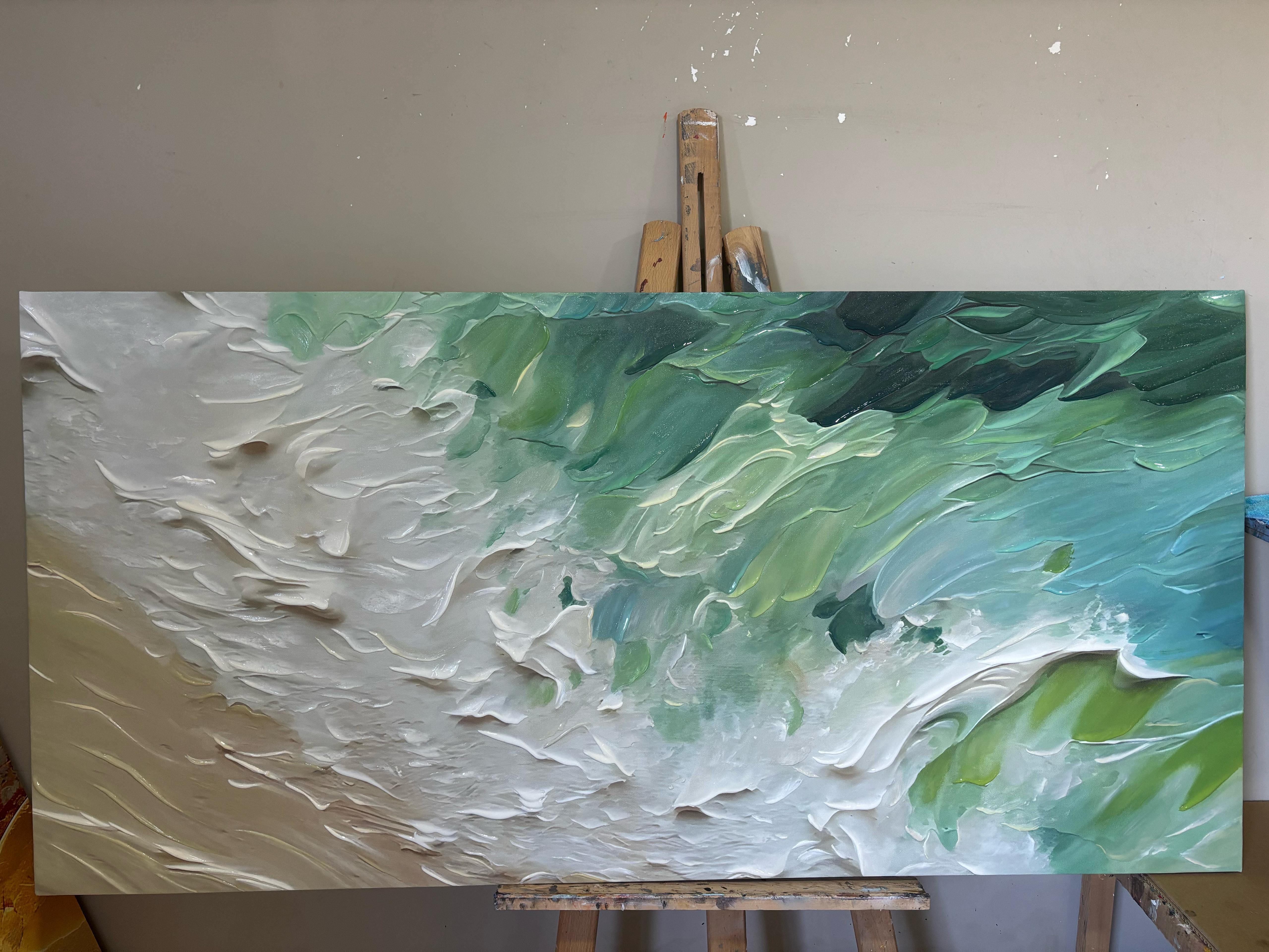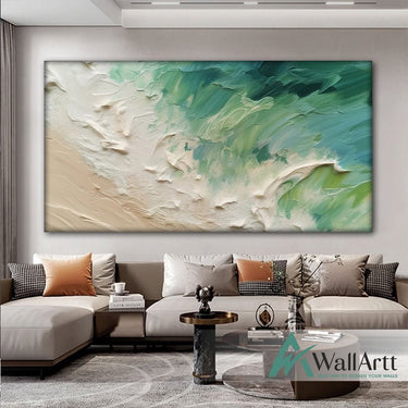 Blue Green Waves 3d Heavy Textured Partial Oil Painting