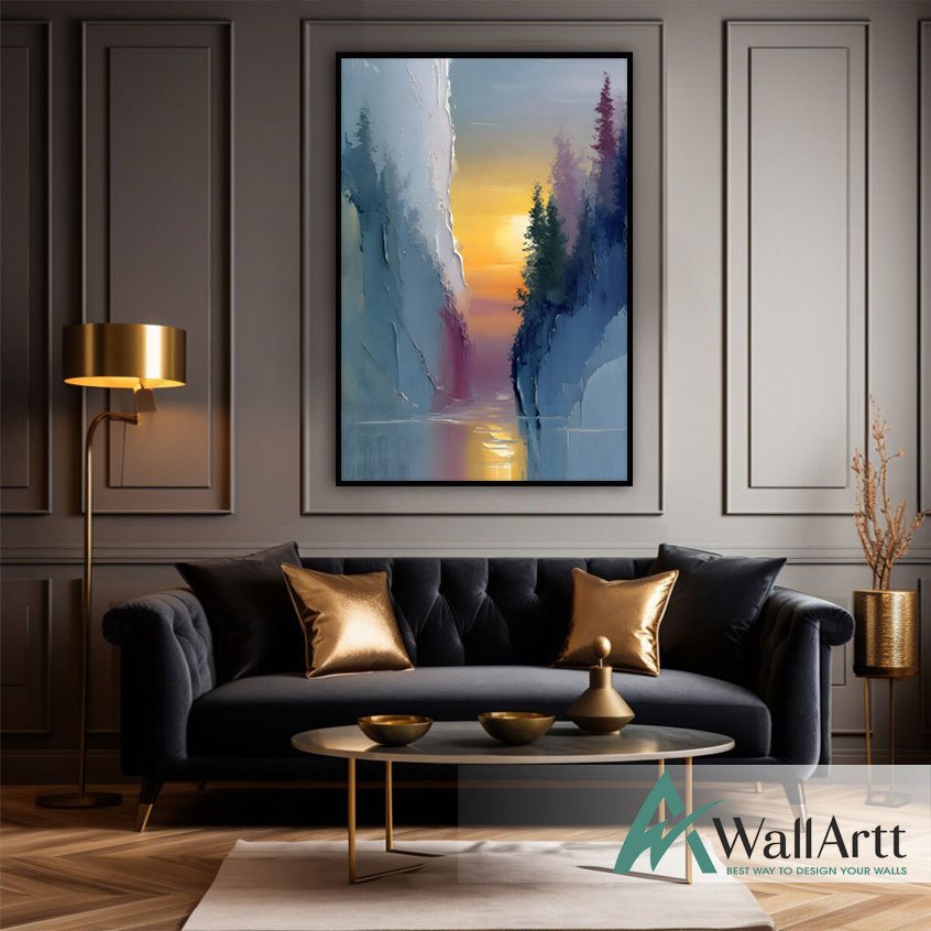custom-made by our artists using spatulas(Palette Knife) and brushes according to your selected visual,dimensions, and frame on top of a printed canvas.