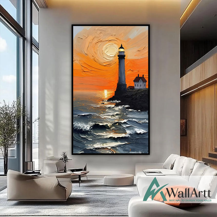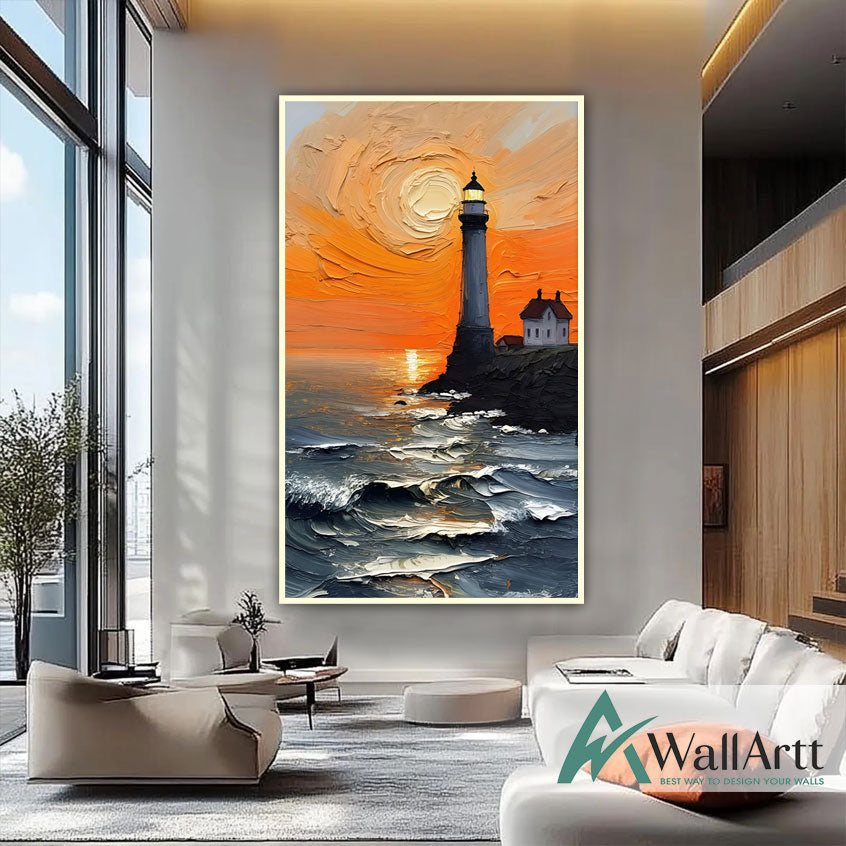Lighthouse Glow 3d Heavy Textured Partial Oil Painting