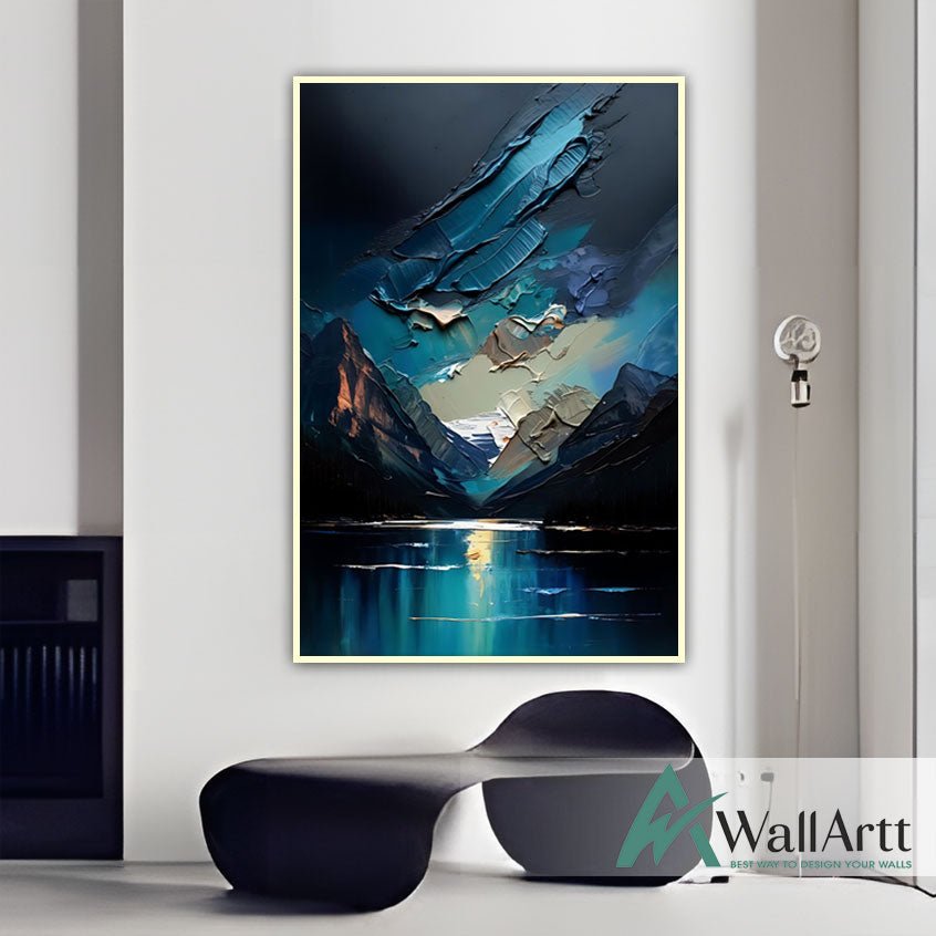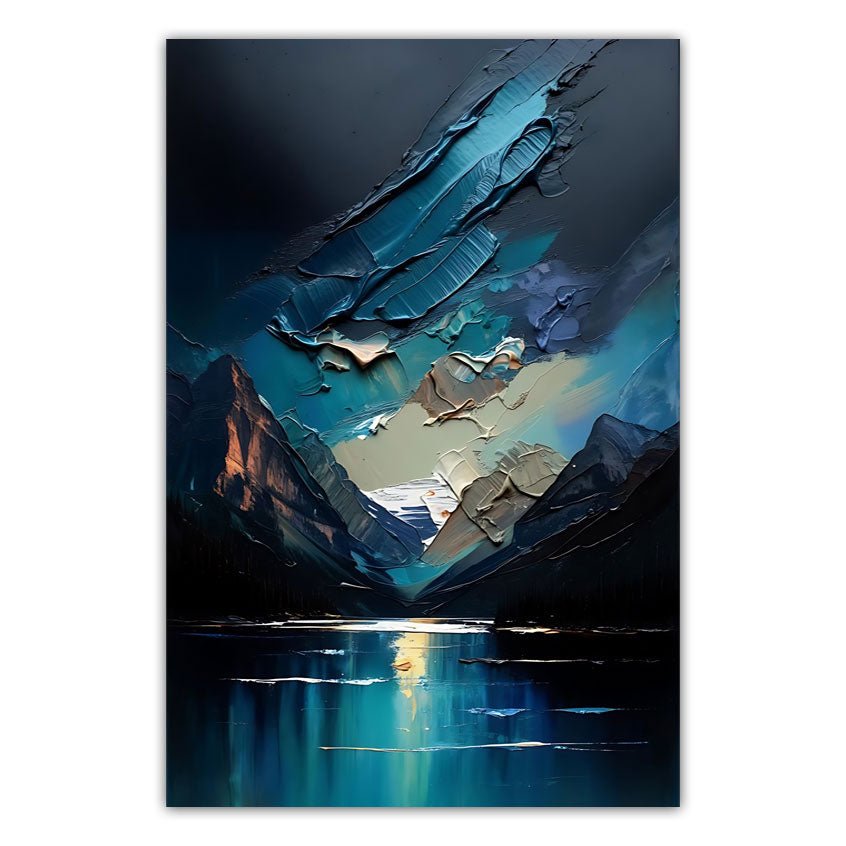 Northern Waterscape captures that calm “deep water” mood with cool teal, navy and soft light highlights. It’s perfect for a living room, bedroom or home office, and looks especially strong above a sofa or console where warm lighting can pick up the raised texture.