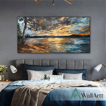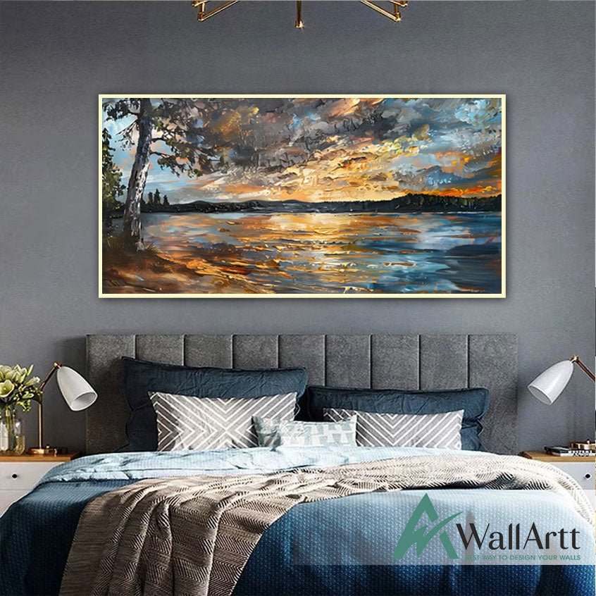Sea and Sunset View 3D Heavy Textured Partial Oil Painting