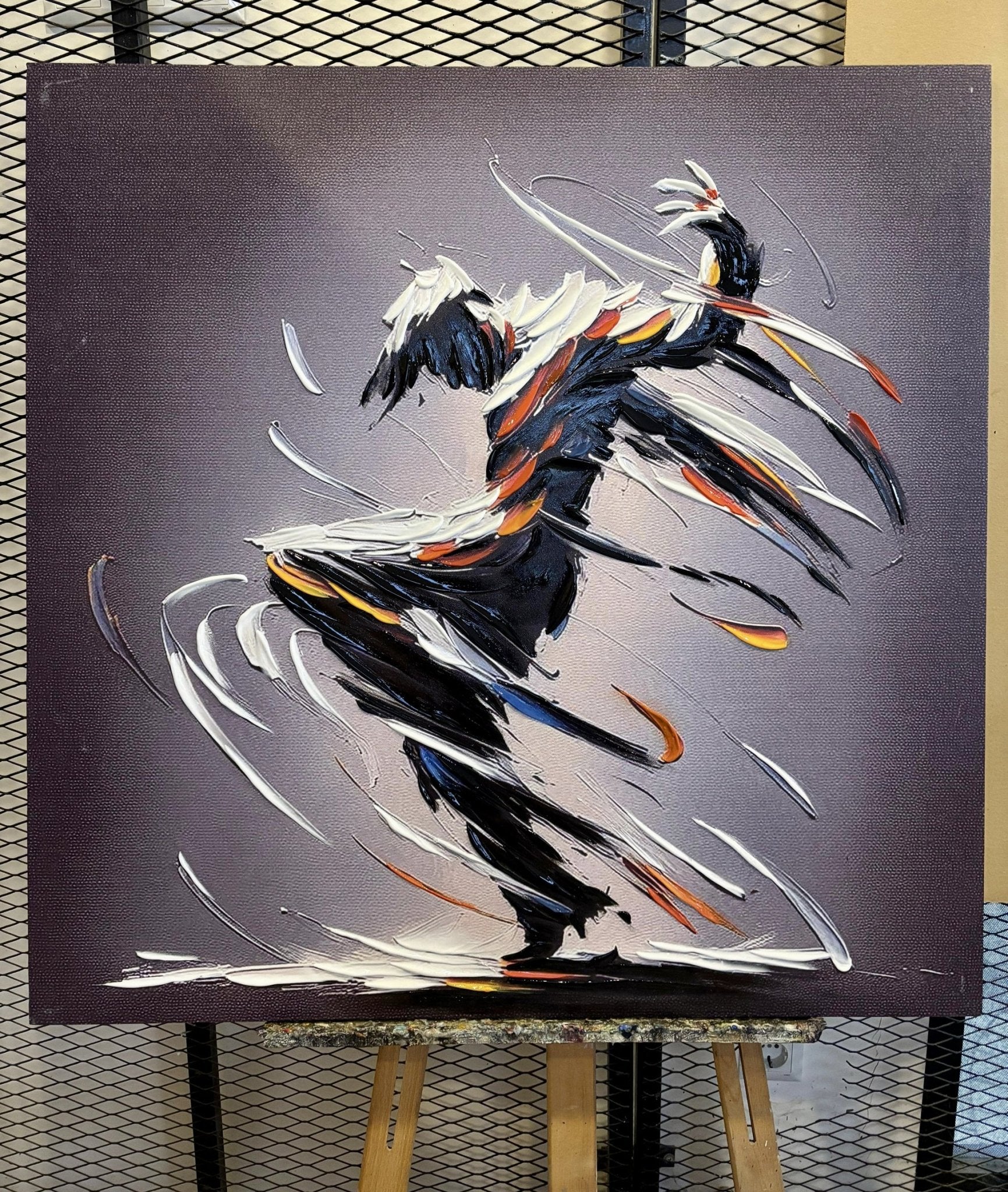 Abstract Male Dancer 3D Heavy Textured Partial Oil Painting - Wall Art