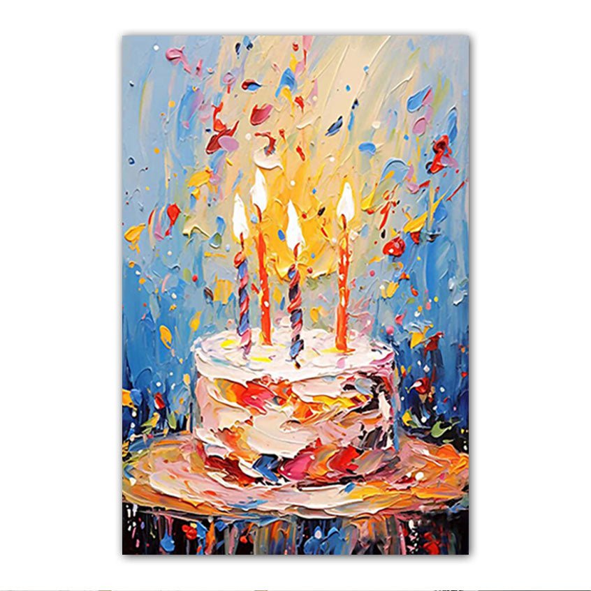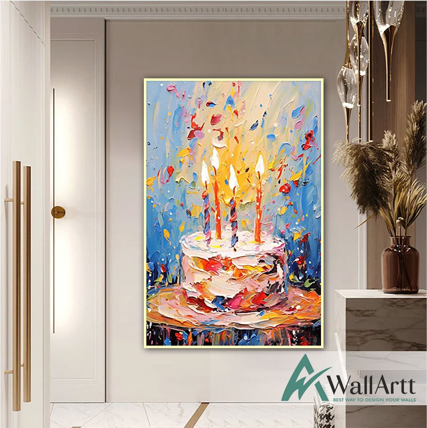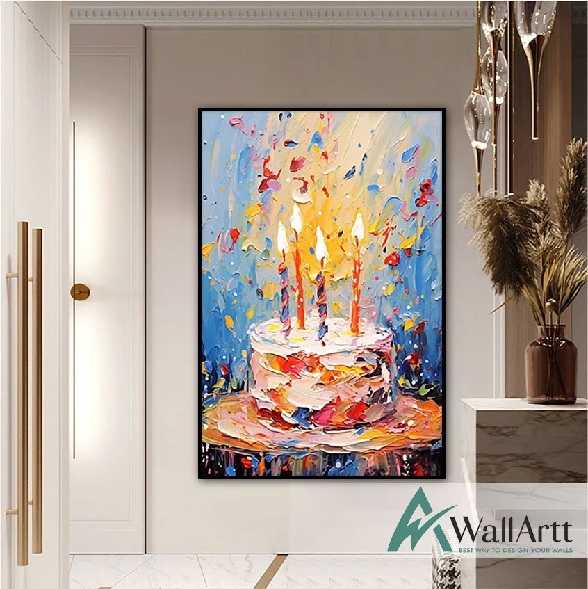 Birthday Cake 3D Heavy Textured Partial oil Painting
