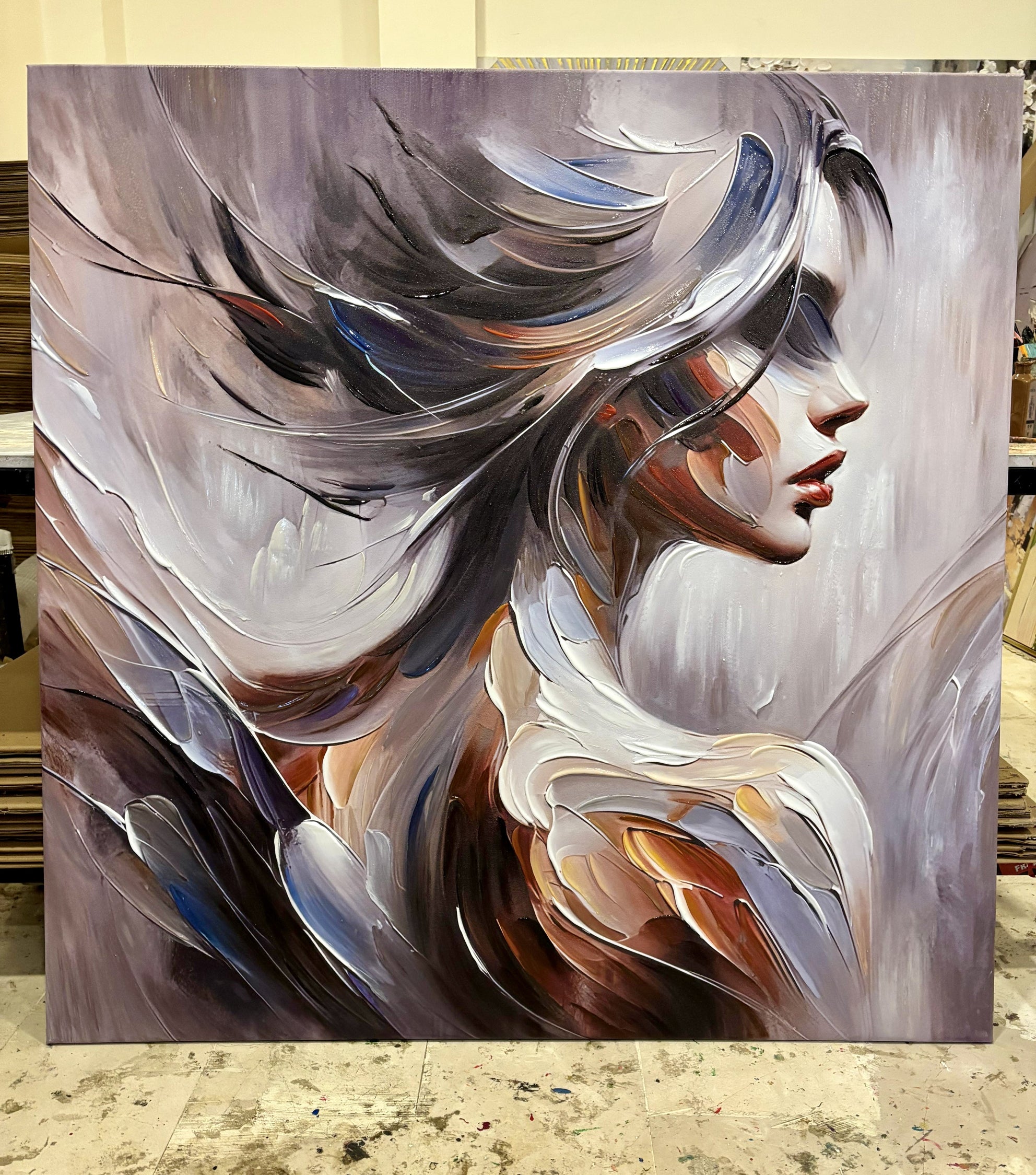 Our 3D paintings aim to achieve a three-dimensional effect using tools such as spatulas and brushes on the printed canvas to create a sense of depth and textural richness.