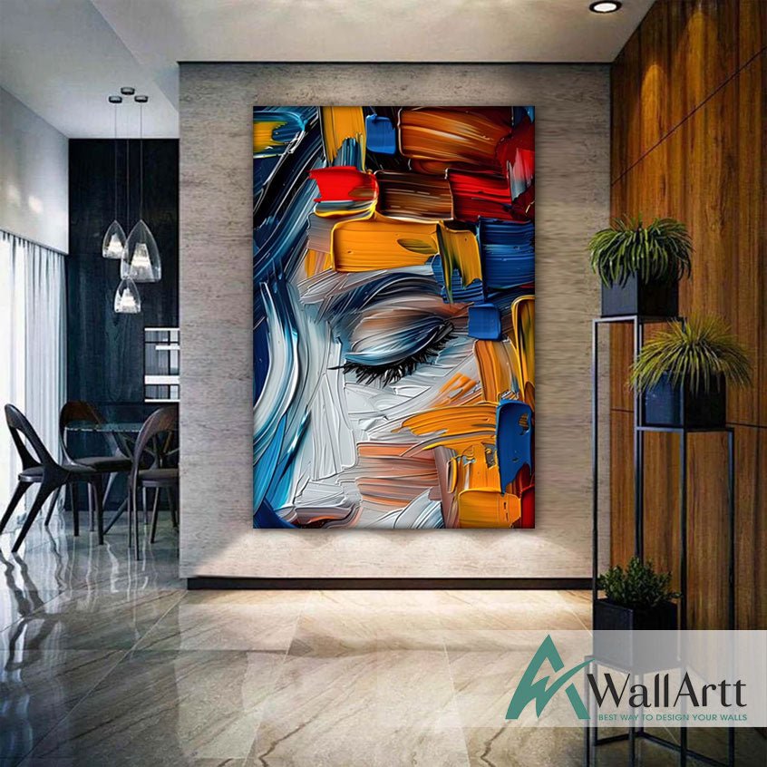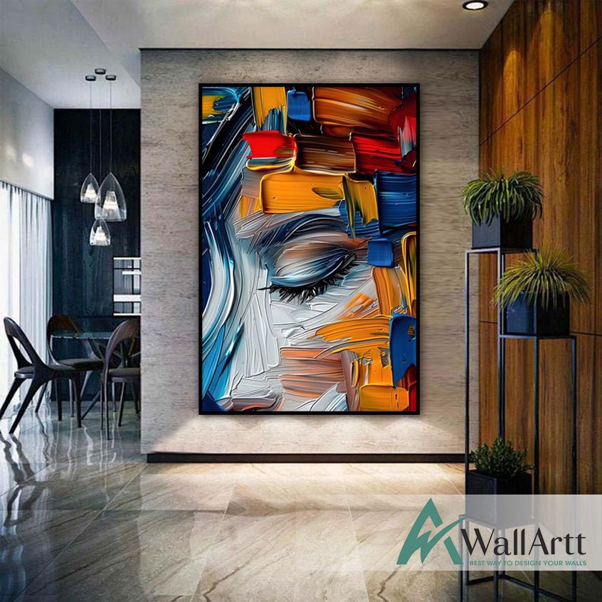 Closed Eye 3D Heavy Textured Partial oil Painting - Wall Art