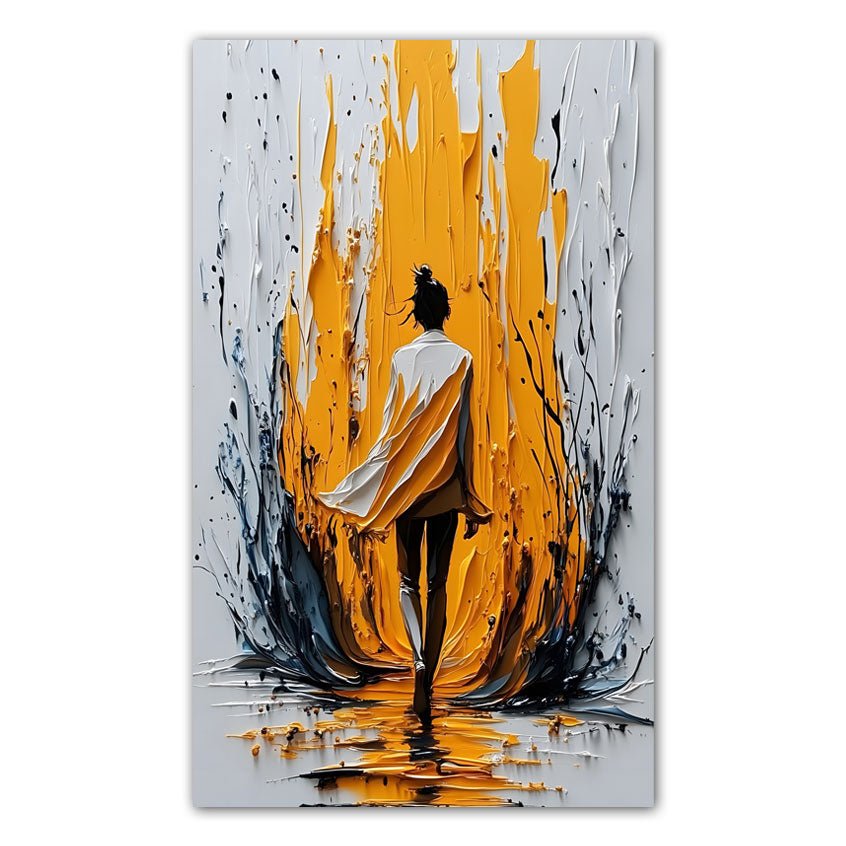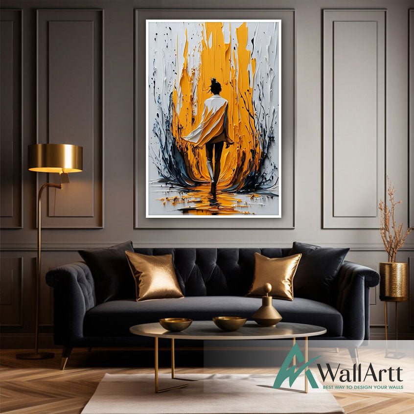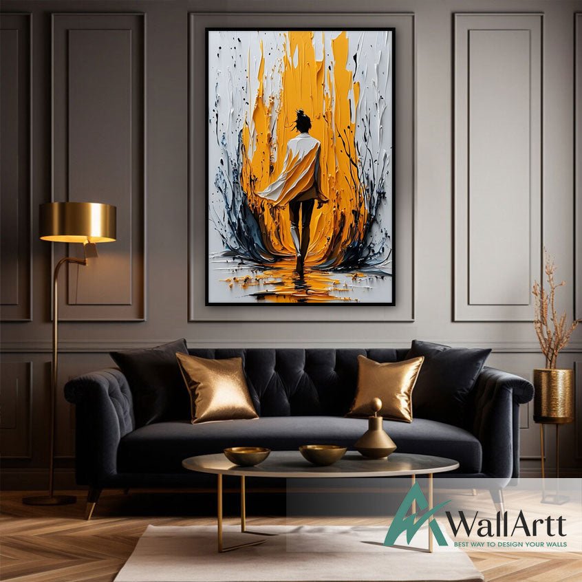 Woman in Orange Flame 3D Heavy Textured Partial Oil Painting - WallArt