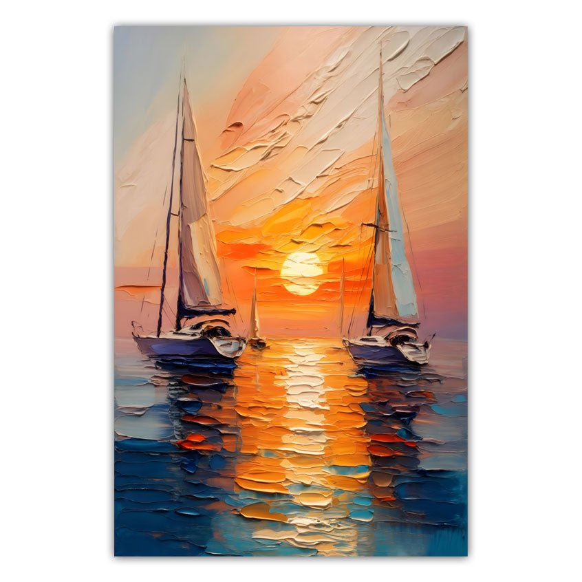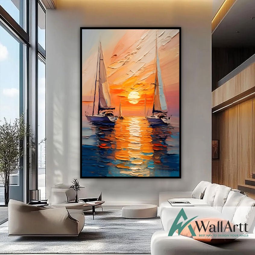 Sunset Sailboats 3d Heavy Textured Partial Oil Painting