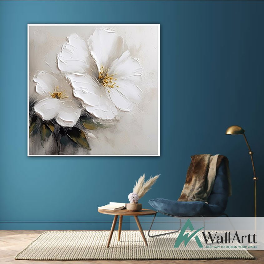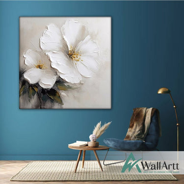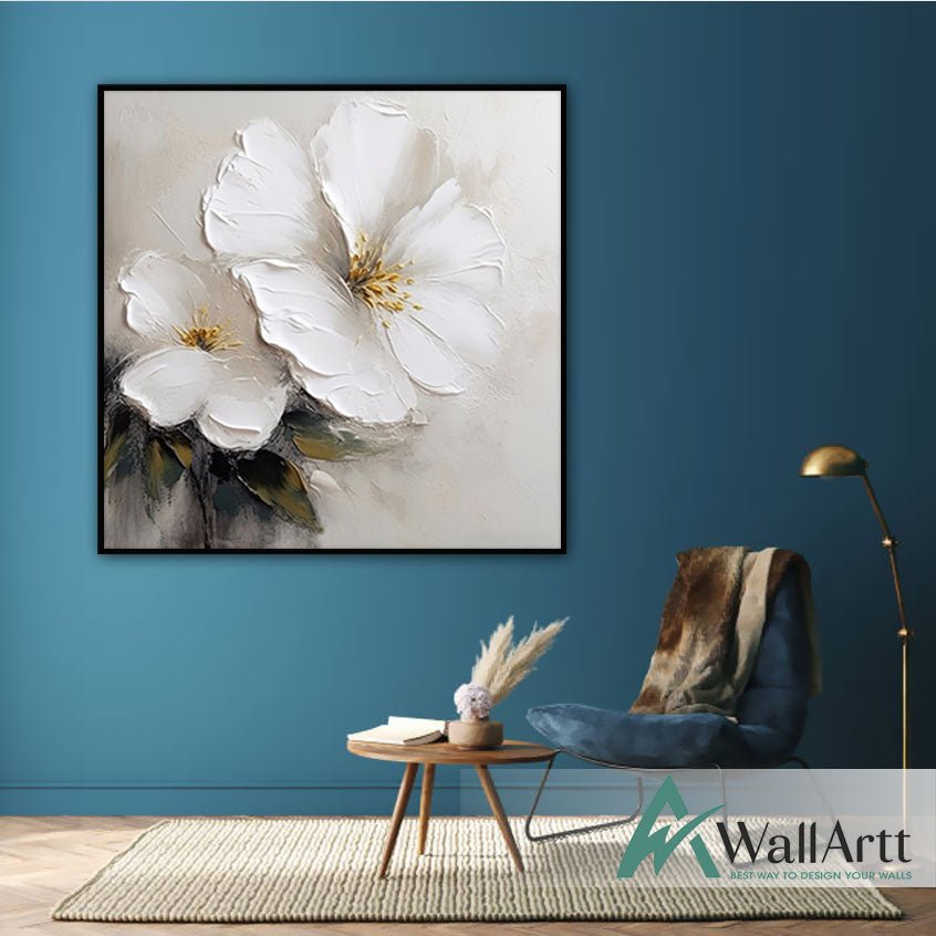 2 White Flower 3d Heavy Textured Partial Oil Painting