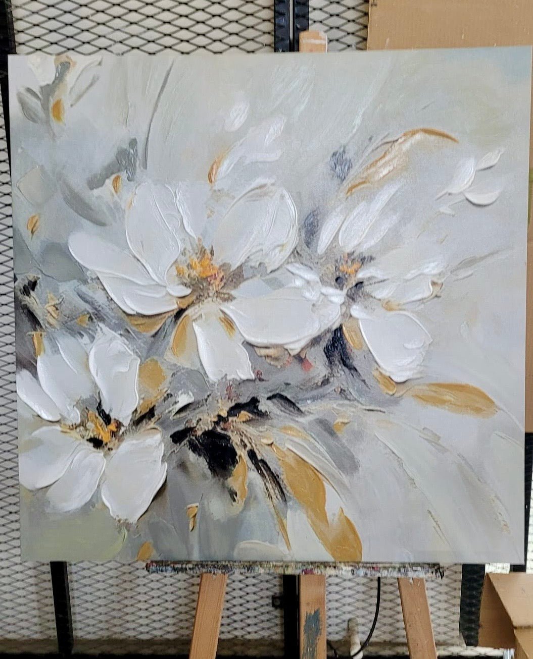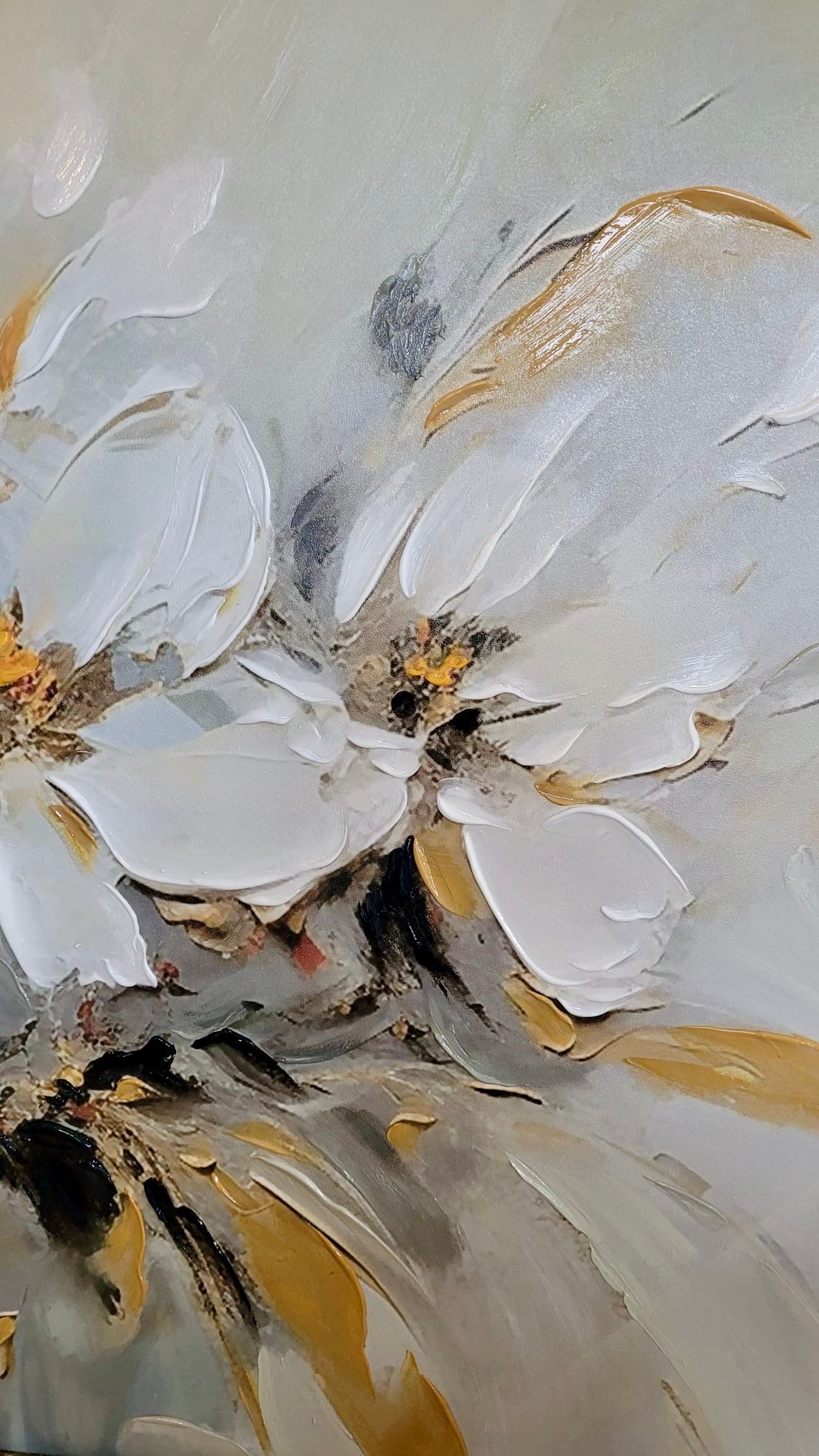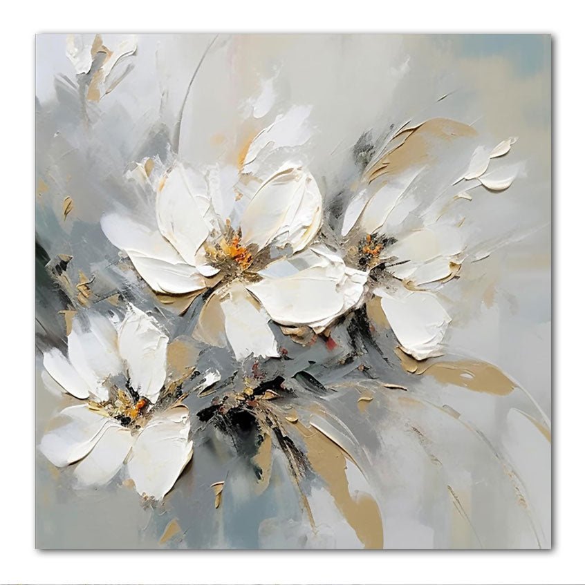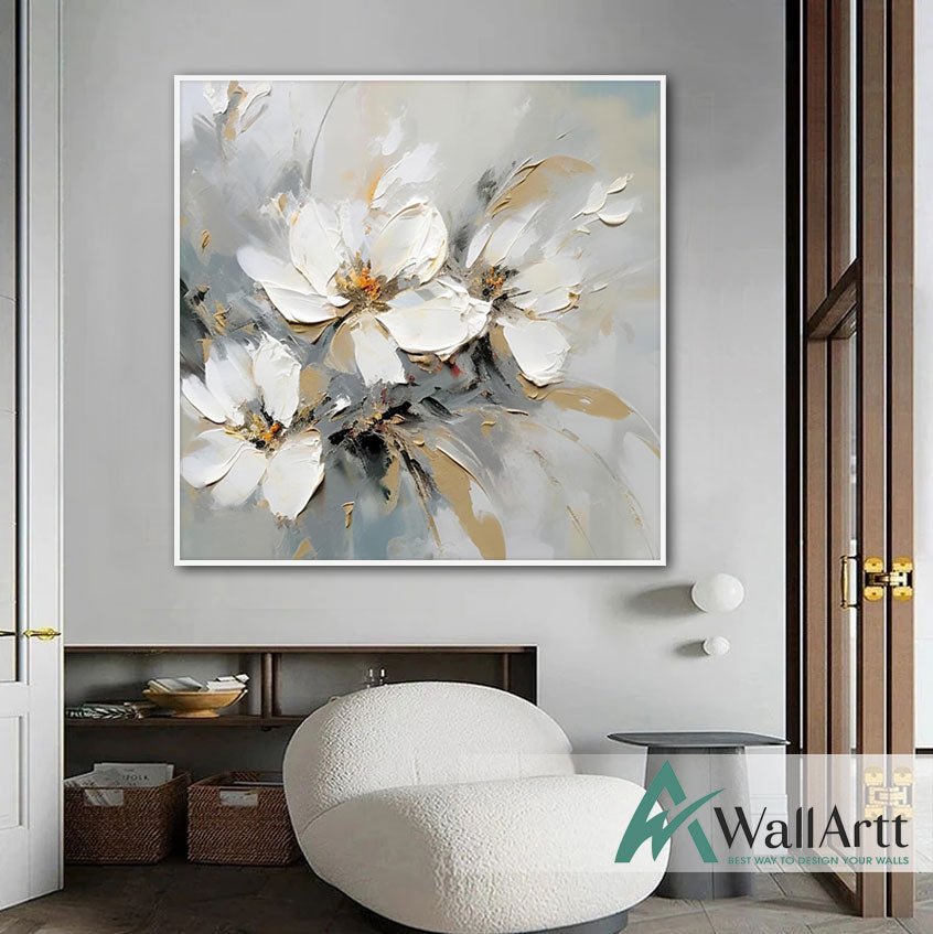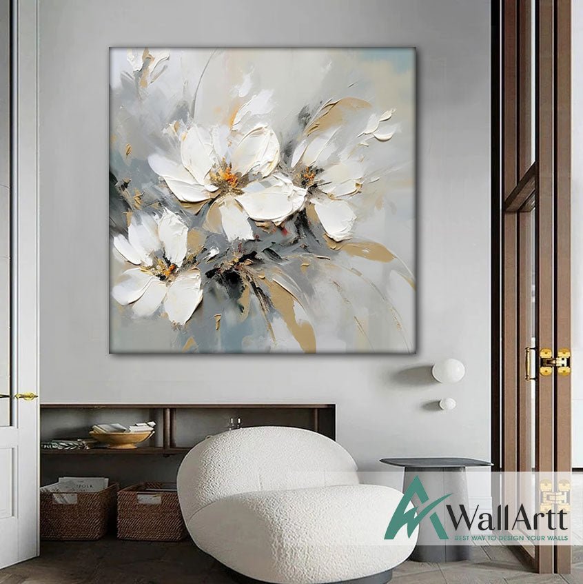 3 White Flowers 3d Heavy Textured Partial Oil Painting