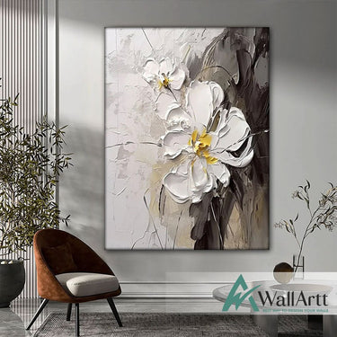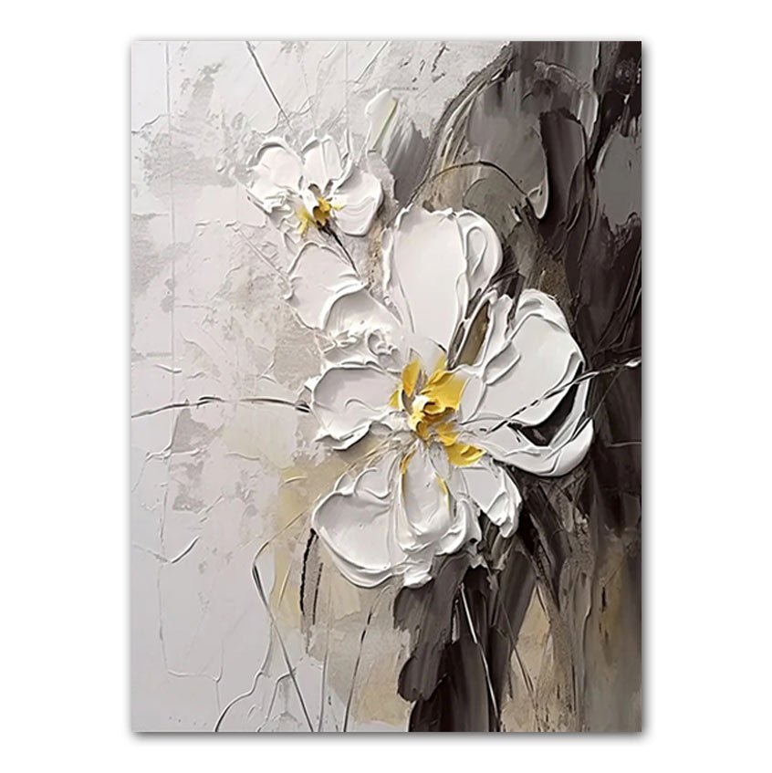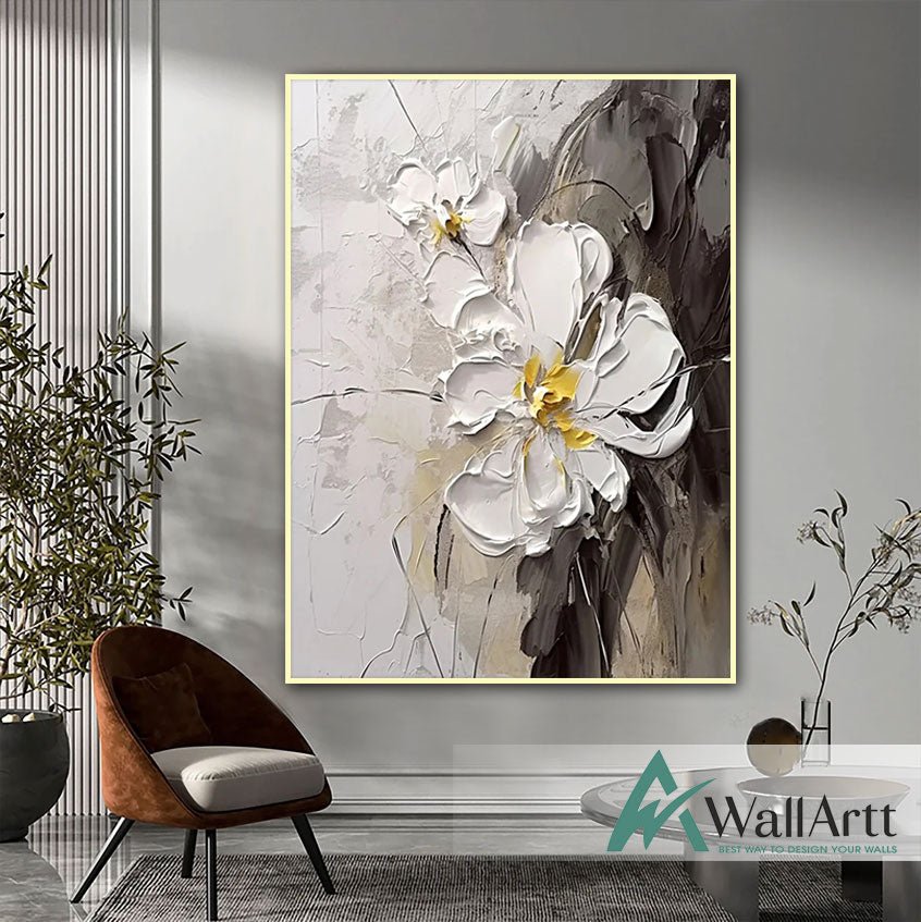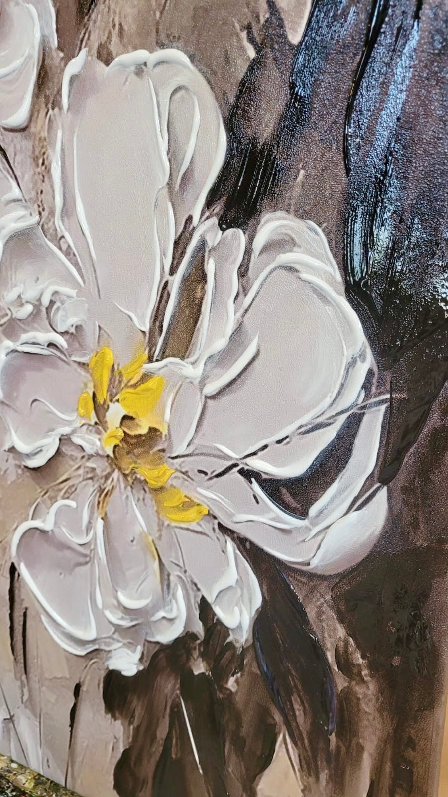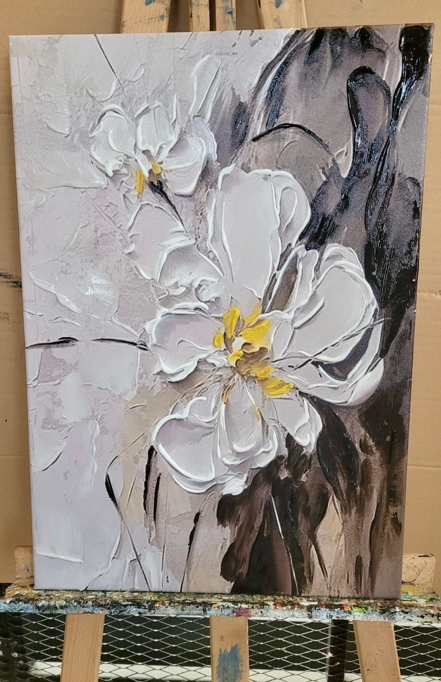 Abstract 2 White Flowers 3d Heavy Textured Partial Oil Painting