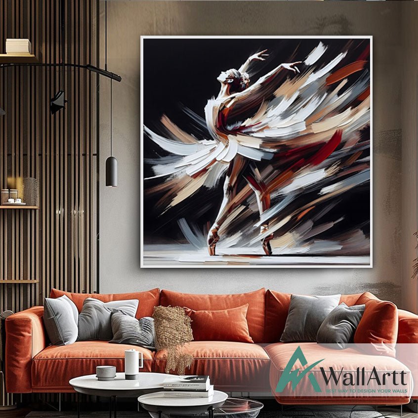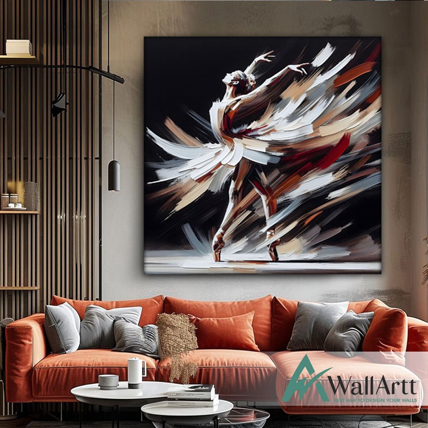 Abstract Ballerina 3D Heavy Textured Partial Oil Painting - Wall Art