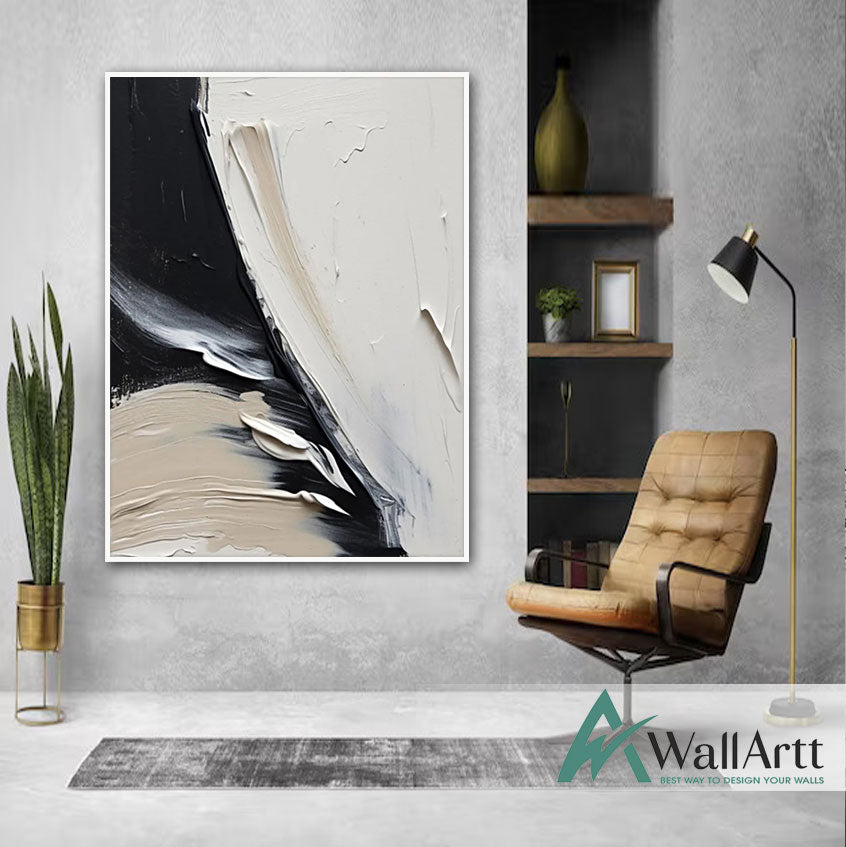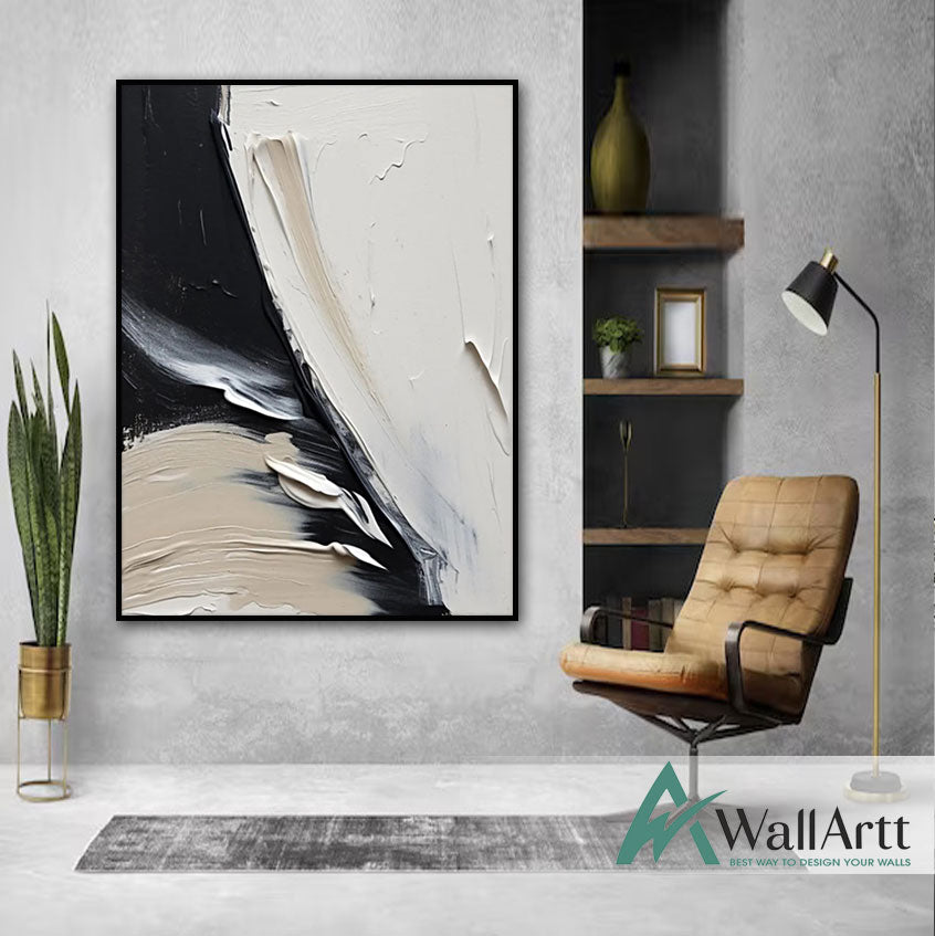 Abstract Black Beige 3D Heavy Textured Partial oil Painting