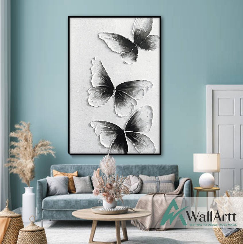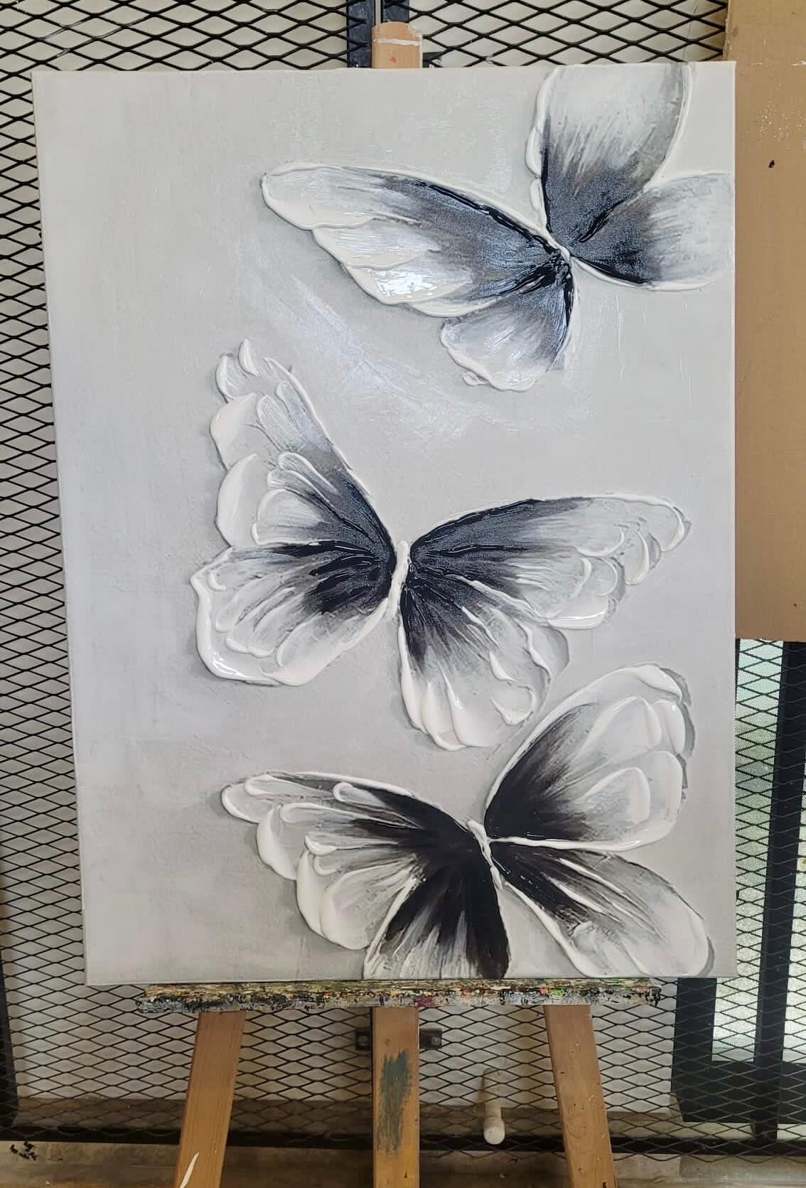 Abstract Black Butterfly 3d Heavy Textured Partial Oil Painting