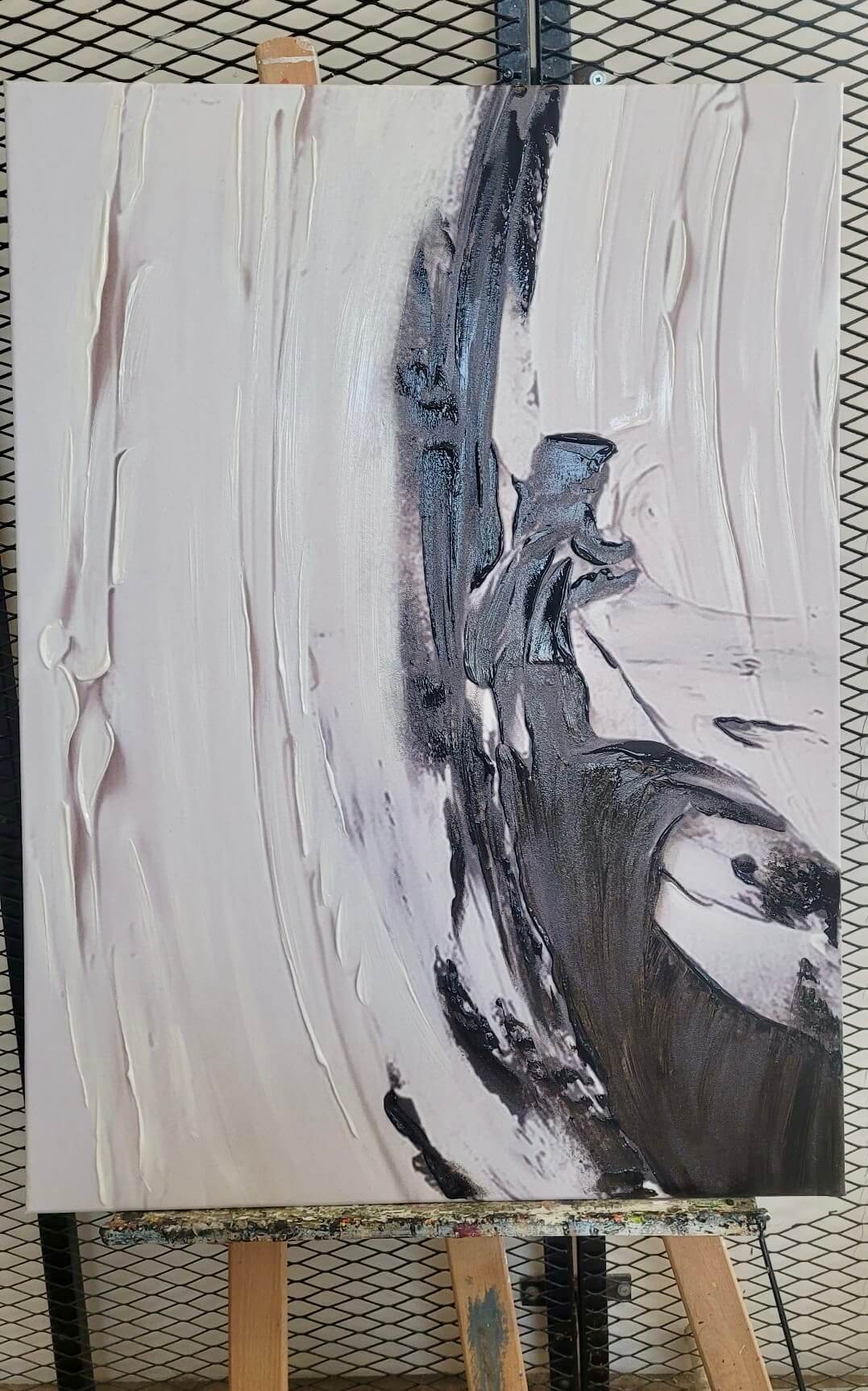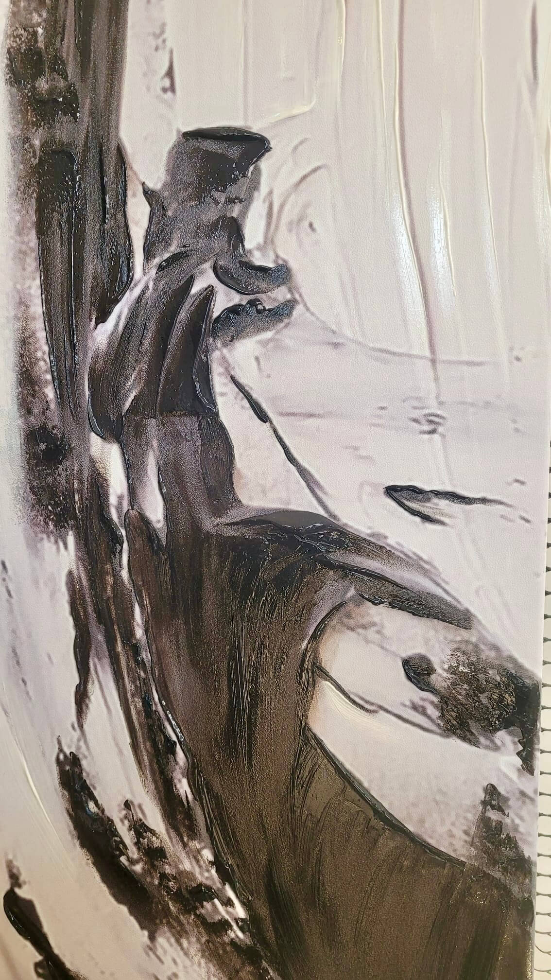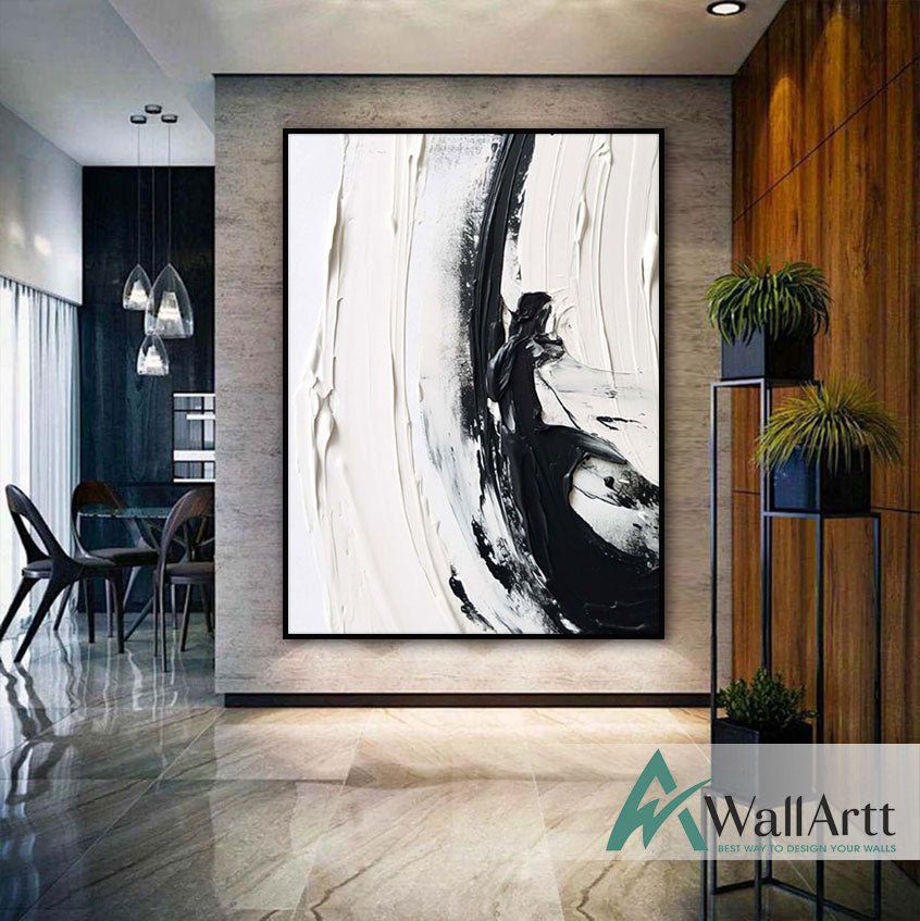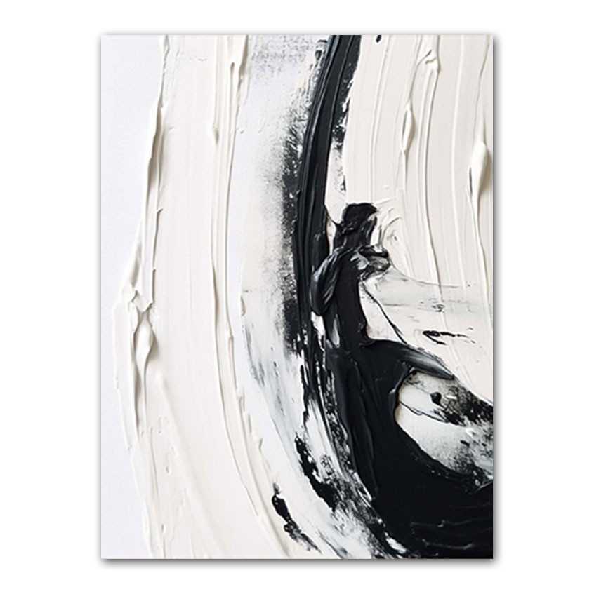 Abstract Black White 3D Heavy Textured Partial oil Painting