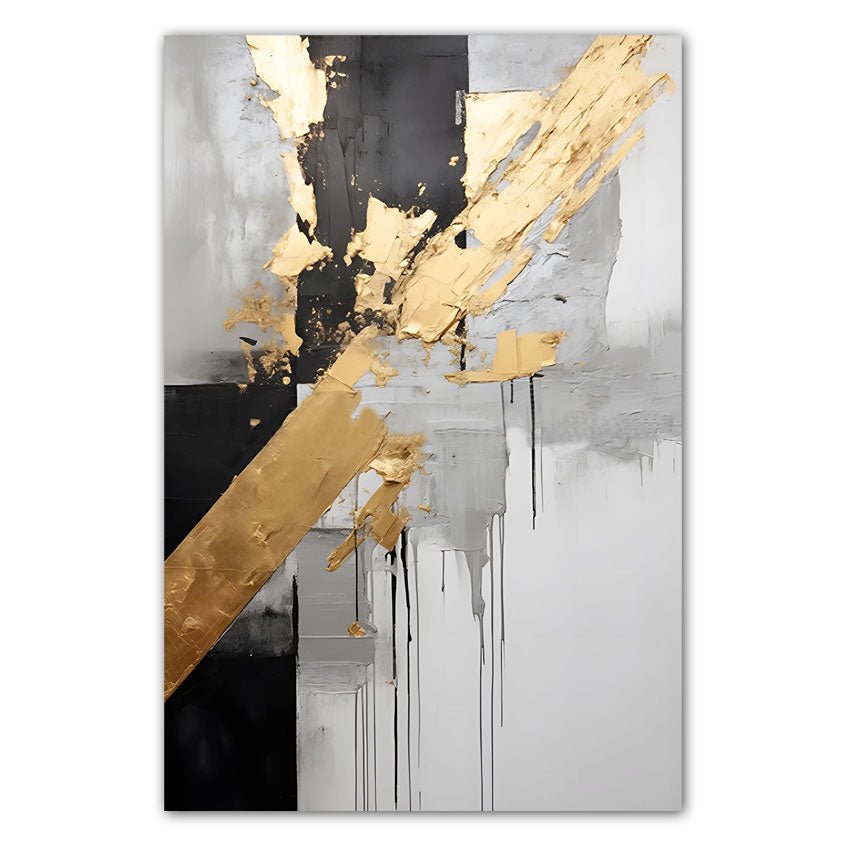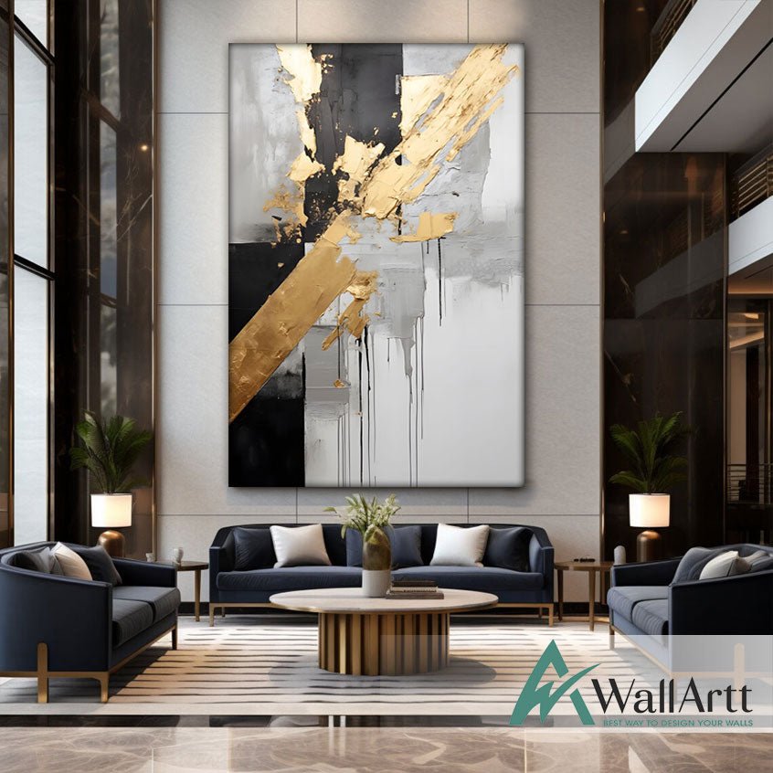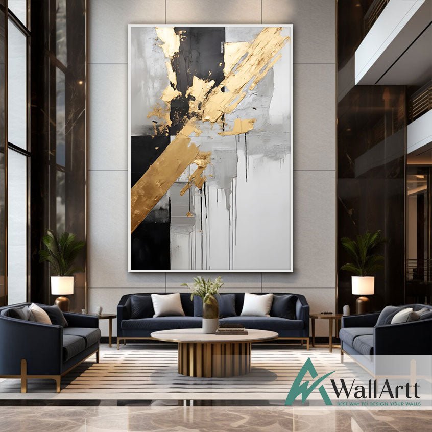 Abstract Black with Gold Foil II 3d Heavy Textured Partial Oil Painting - Wall Art